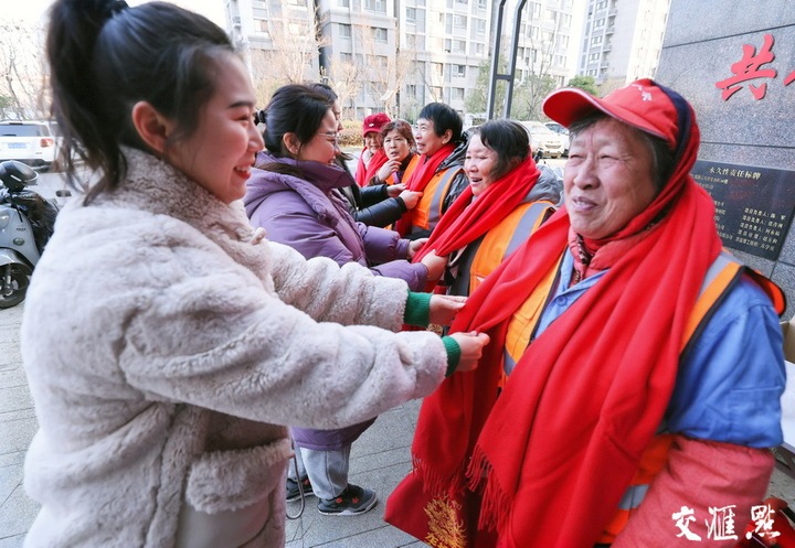 1月6日,连云港市墟沟街道滨海社区开展“暖心八宝粥 情暖环卫工”活动,为环卫工人赠送爱心腊八粥和围巾,送上冬日里的温暖。王健民 李艳敏摄 视觉江苏网供图