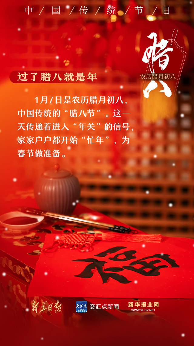 1月7日是农历腊月初八,中国传统的“腊八节”。从这天起,人们买年货、扫房屋,家家户户都开始“忙年”,为春节做准备。