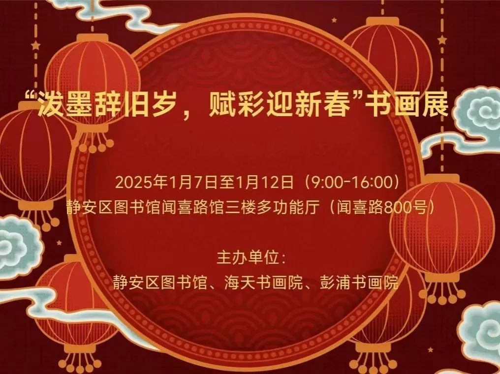 展览地址:静安区图书馆闻喜路馆三楼多功能厅(闻喜路800号)