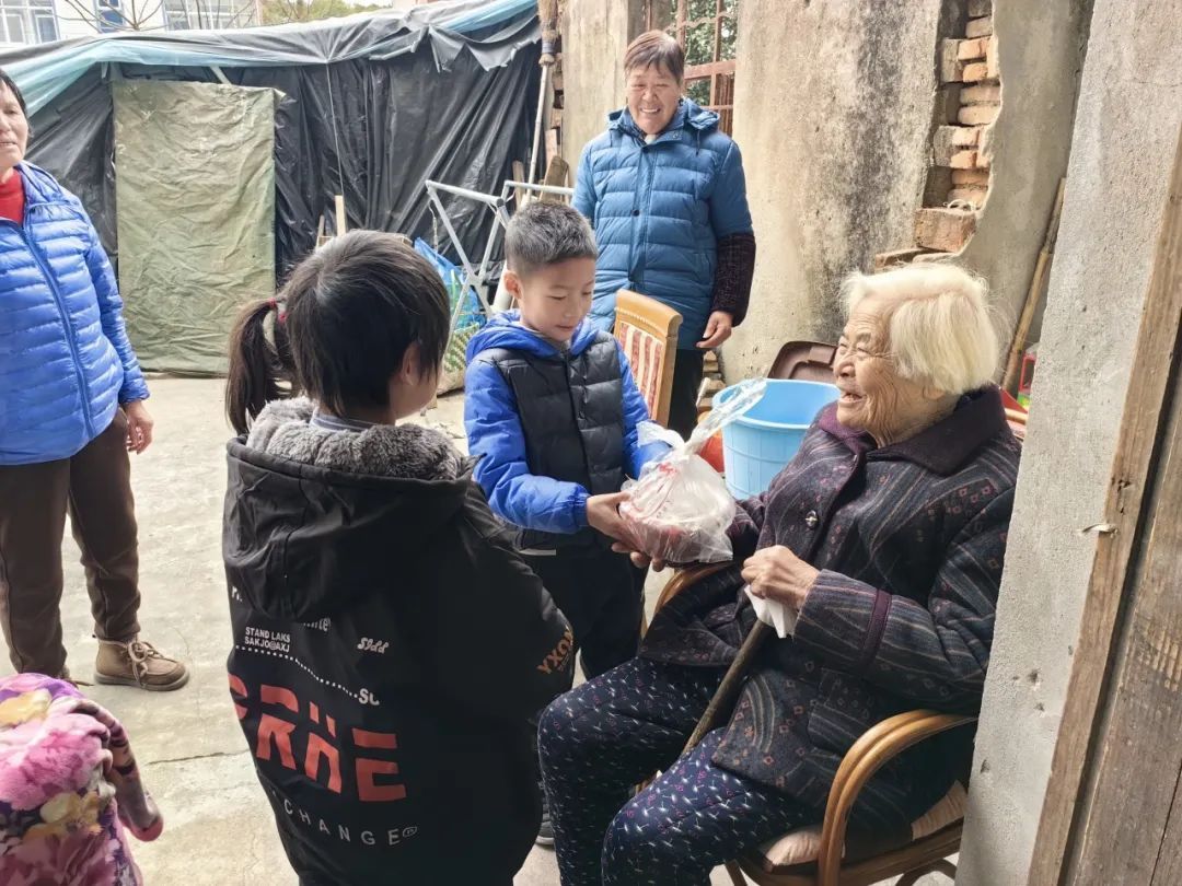 “爷爷奶奶,请喝腊八粥,祝您天天快乐,身体健康!”孩子们带上腊八粥和祝福送至辖区内的独居老人家中,老人和孩子的脸上都露出了暖阳般的笑容。