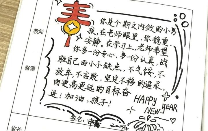 申蕾说,这些古诗词用词简单配上绘画,能让他们看懂,重要的是捕捉每位同学身上的优点,让他们看见自己的点滴进步,感受到老师对自己的关注,这才是期末评语的意义所在。