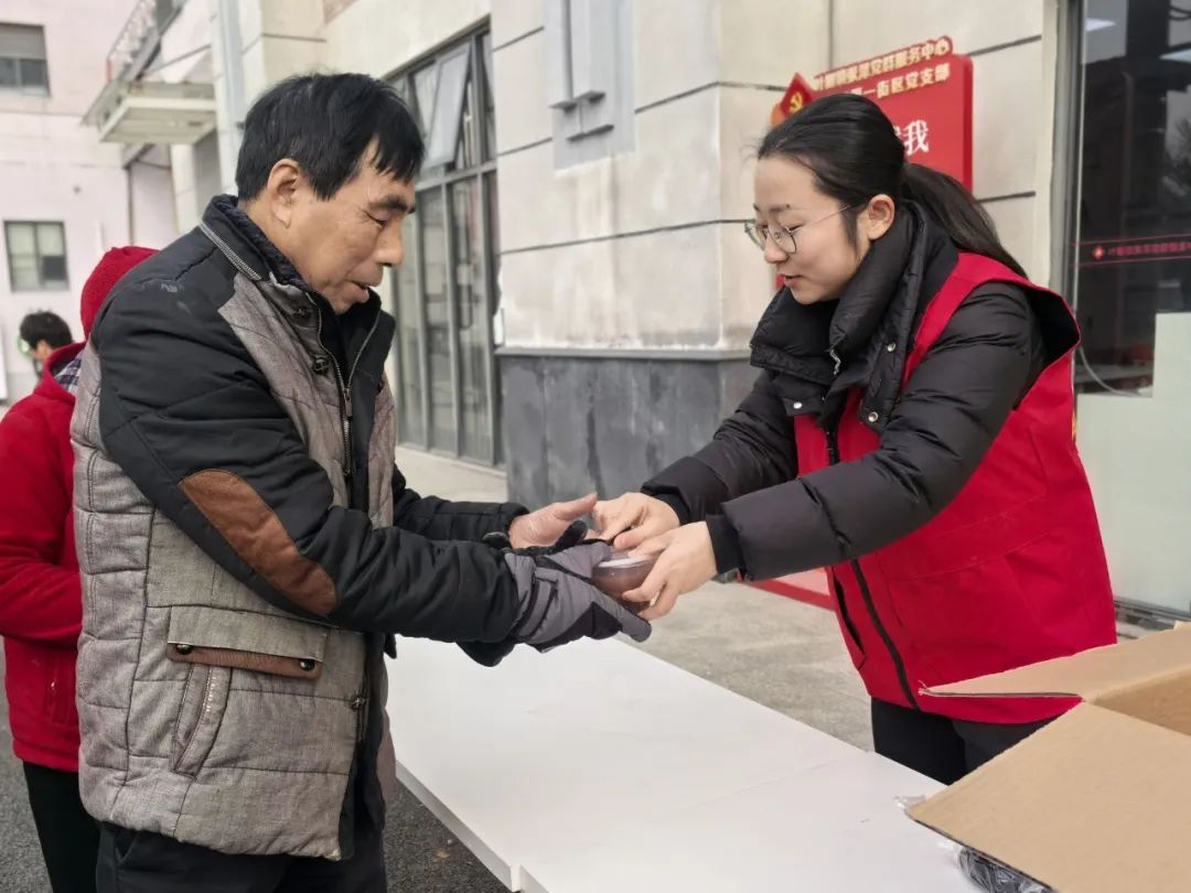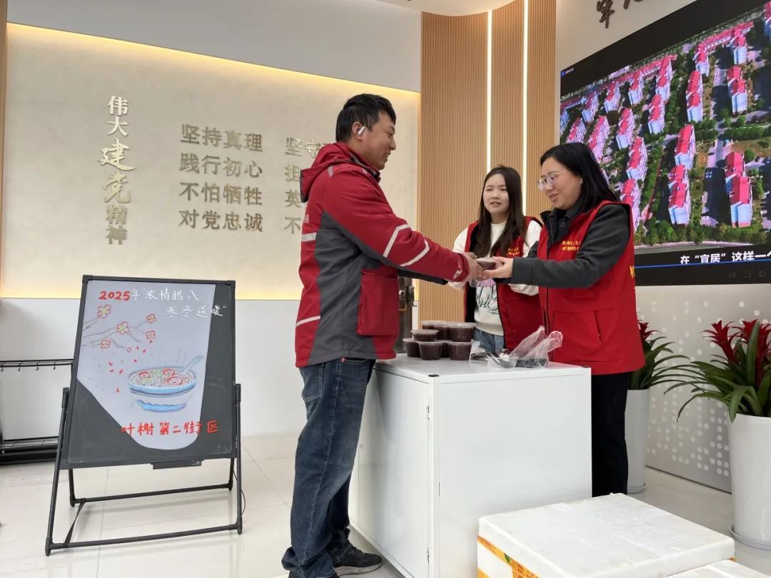 一大早,餐饮店工作人员开始忙碌起来。经过两个小时的精心制作,大锅里的腊八粥热气腾腾,香气四溢。中部园区街区党支部的党员们也早早抵达现场,为环卫工人递上腊八粥,送上真挚的祝福。“您辛苦了,喝碗腊八粥,暖暖身子!”“祝您新年快乐!”……除了一碗碗饱含爱心的腊八粥,党支部还准备了生活用品、春联等,为环卫工人送上暖心关怀。