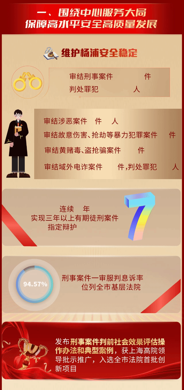 2025年1月8日上午,上海市杨浦区人民法院院长王朝晖在上海市杨浦区第十七届人民代表大会第七次会议上作法院工作报告。报告有哪些亮点?一图读懂↓