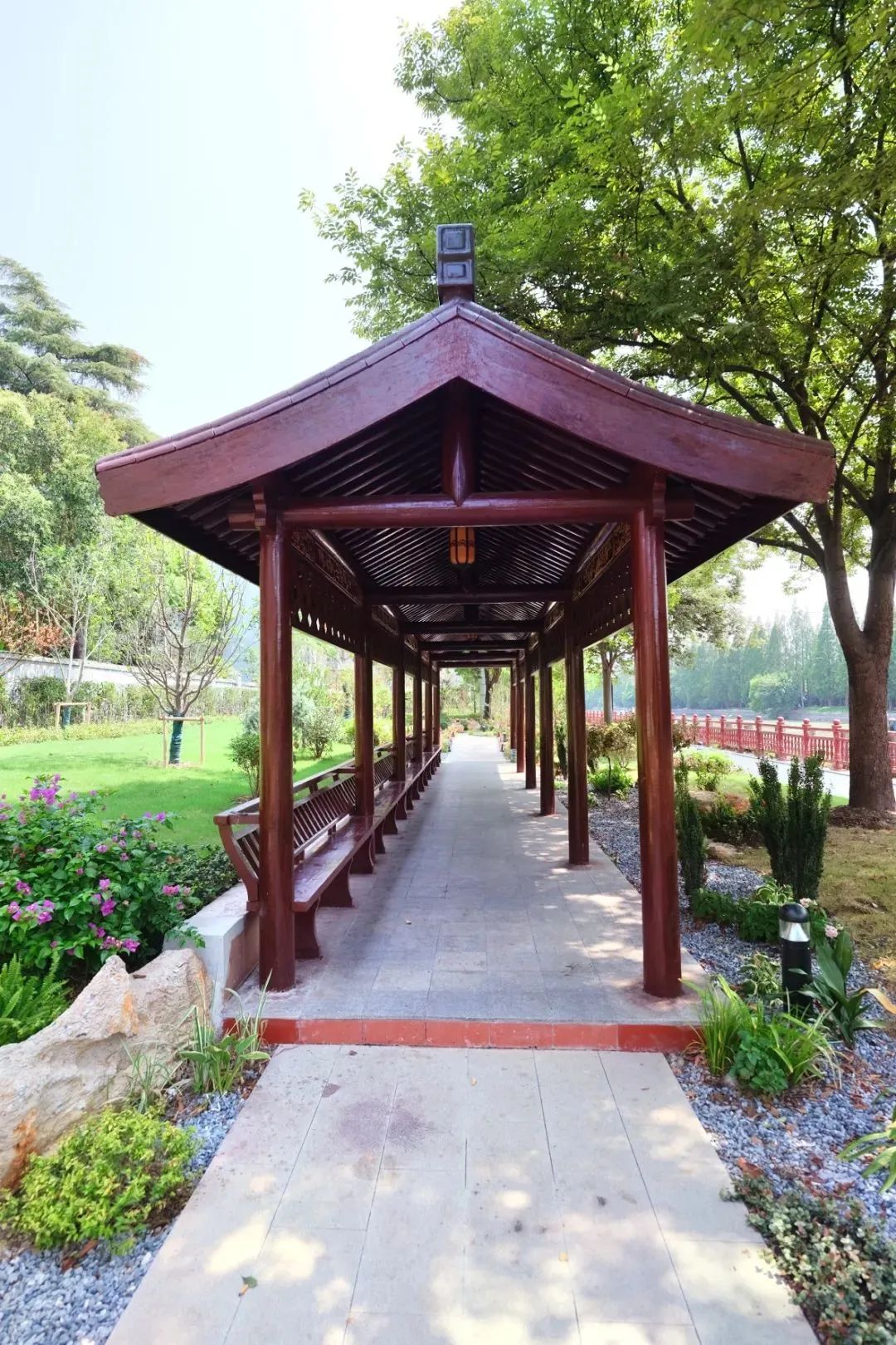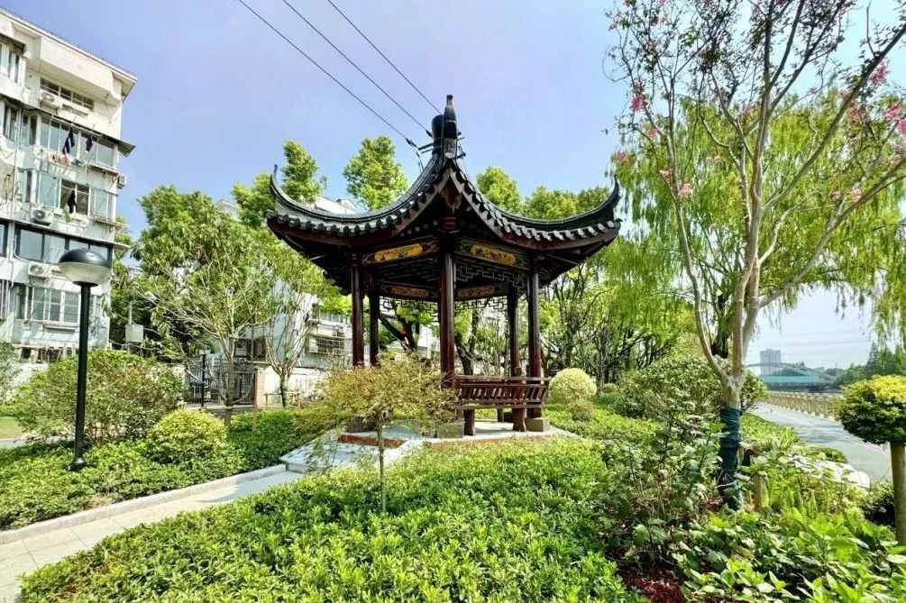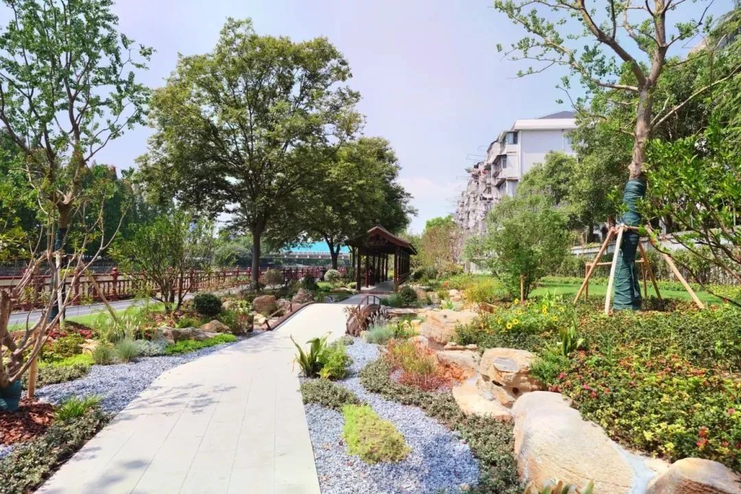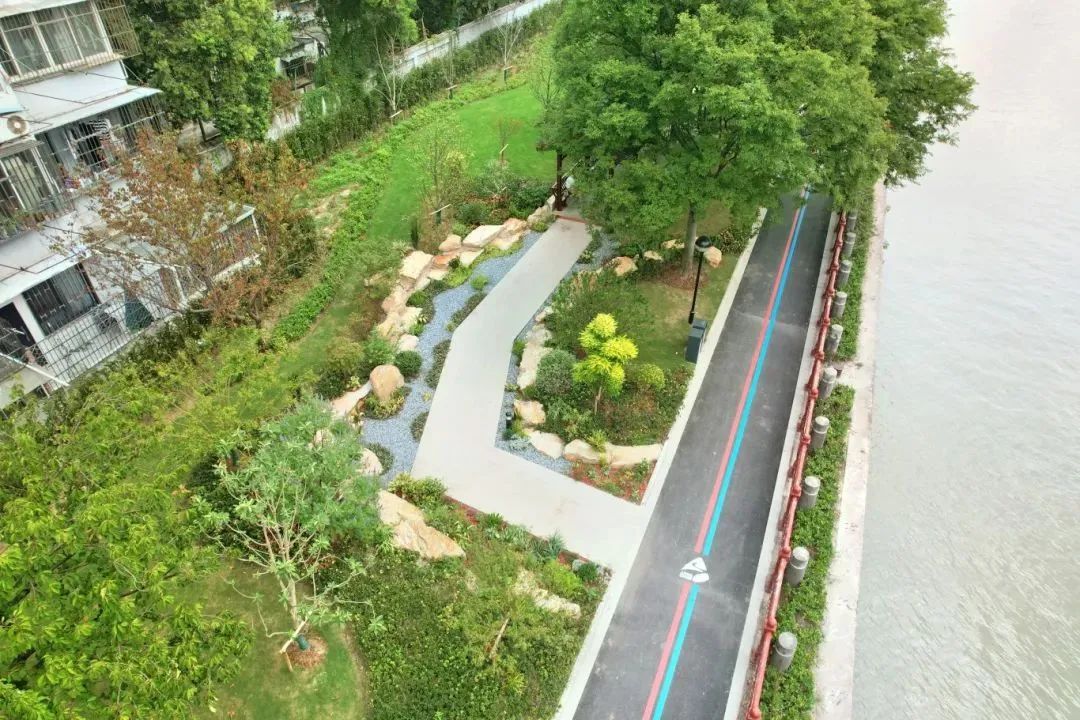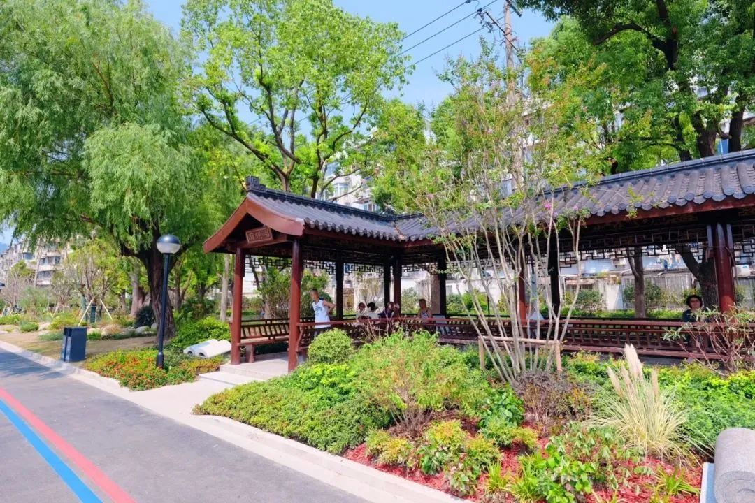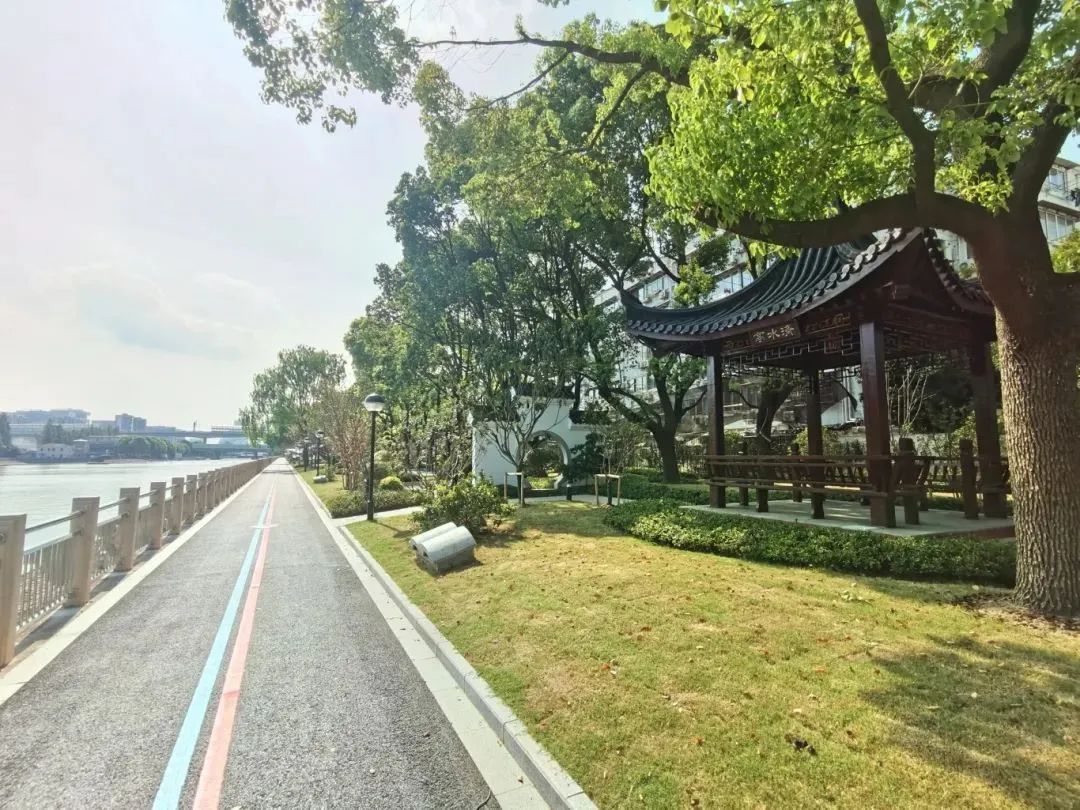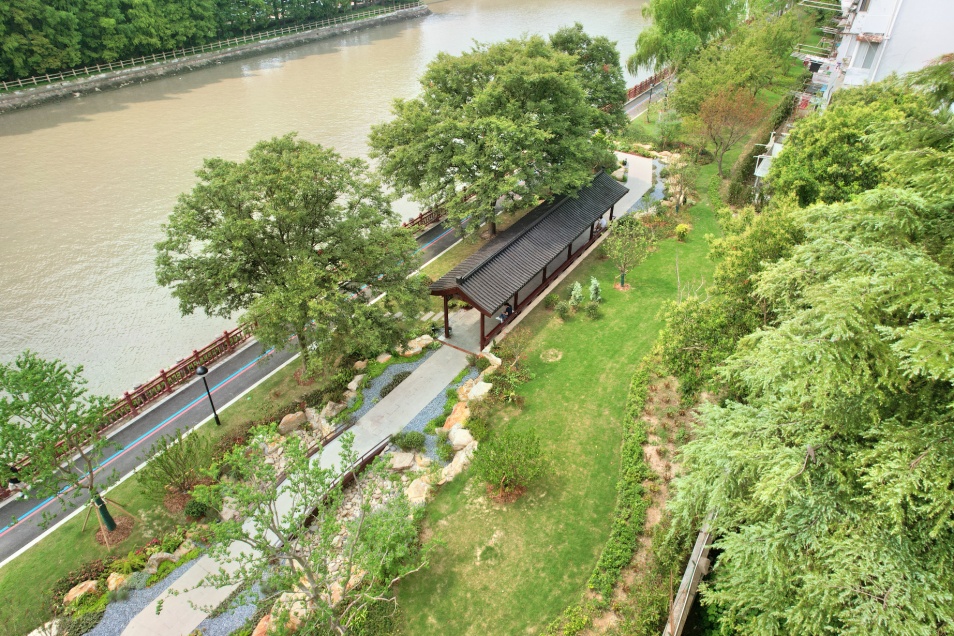 以“川杨印记、水岸新生”为设计主题,讲述一河连江海,一带牵人民的人文故事。通过优化步道系统、提升绿化品质、新增场地及活动设施、完善排水及照明等内容,保护优质的生态基底,同时完善沿河的便民和惠民措施。通过修缮耀辉亭、唱晚廊、济水亭等中式亭廊,提升亭廊周边的绿化,打造具有川杨河风韵的一亭一景风景线。