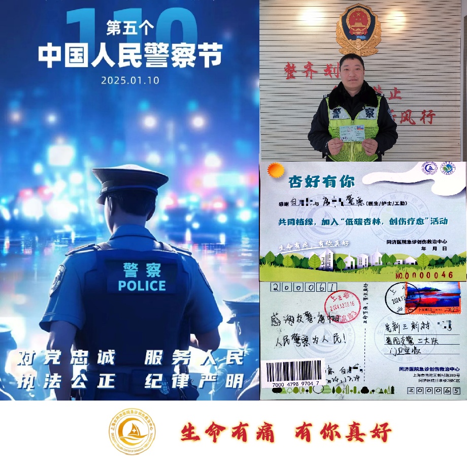 新年伊始,同济医院急诊创伤救治中心团队和普陀交警二大队分别收到了被助动车撞伤的患者白女士的“‘杏’好有你”的明信片。这张明信片的背后,是警医协作、生死时速的感人故事。