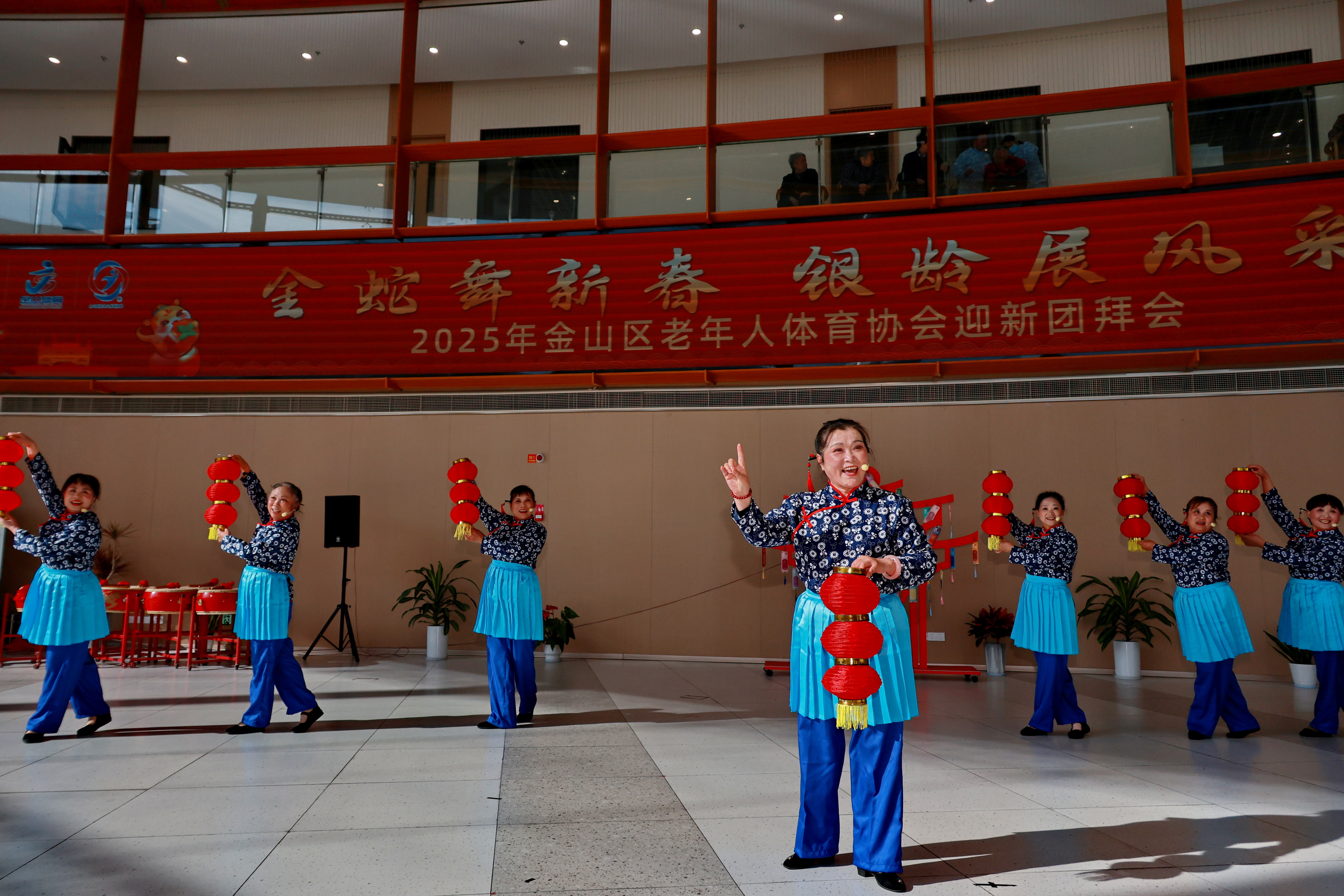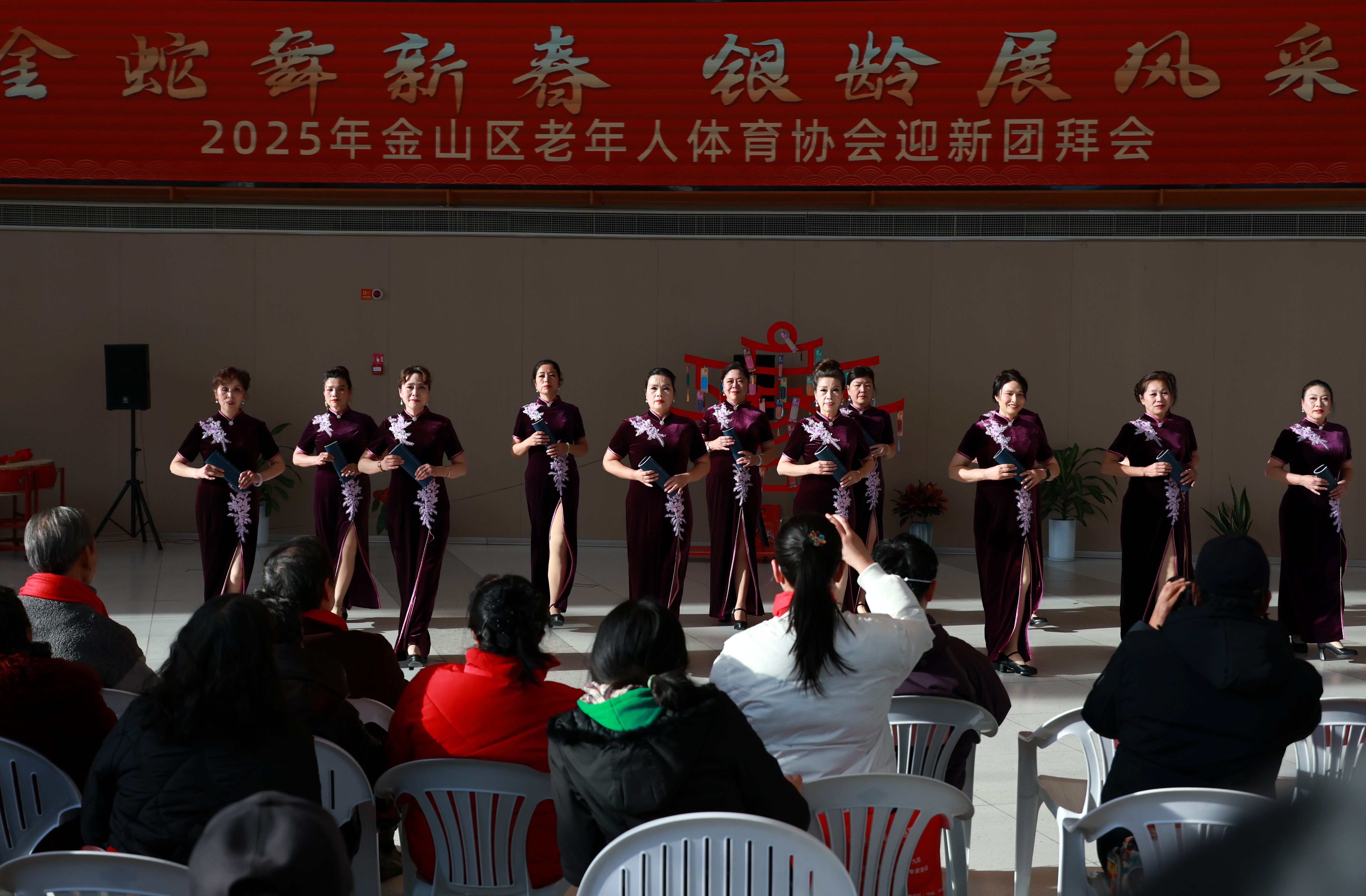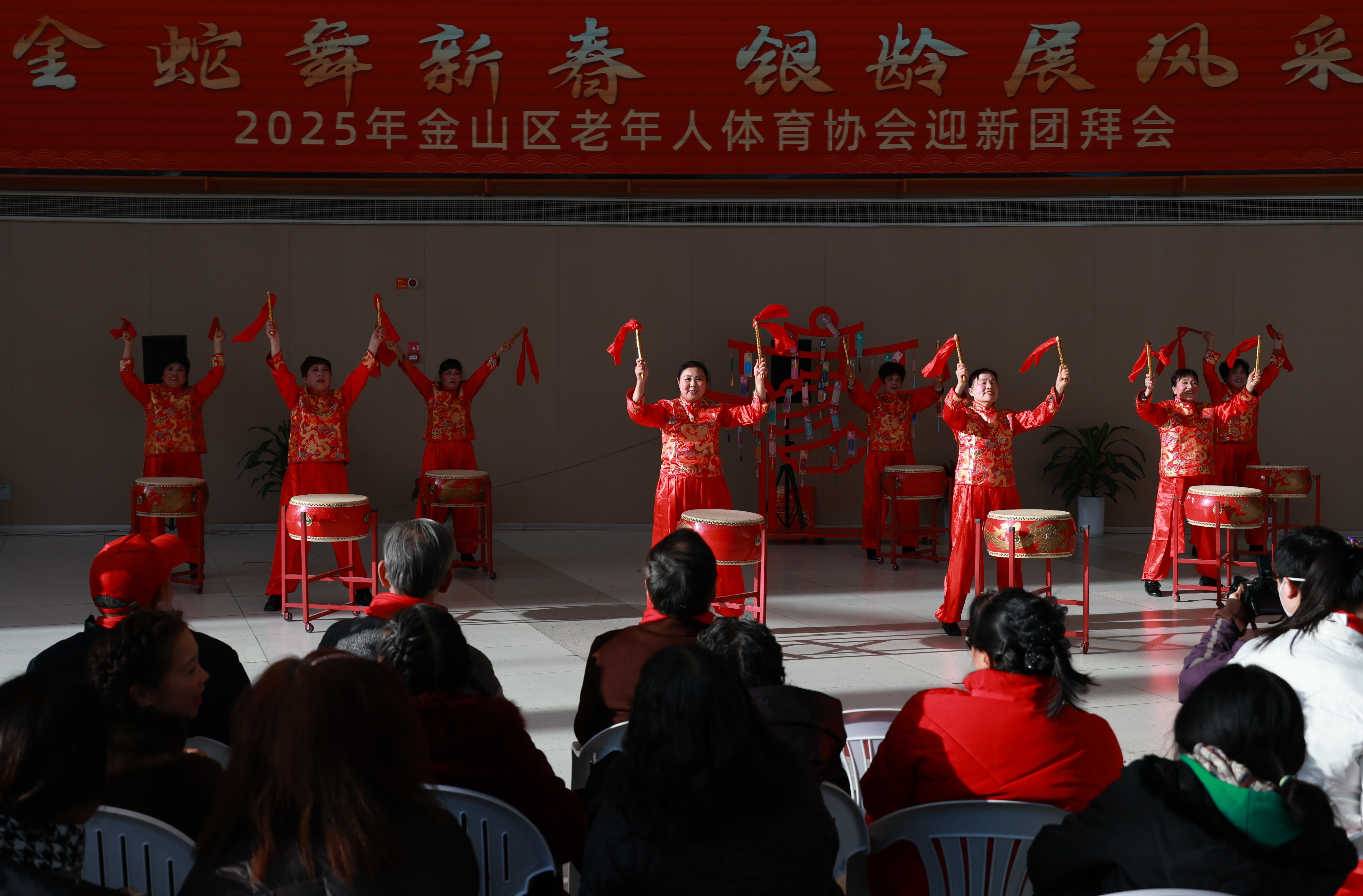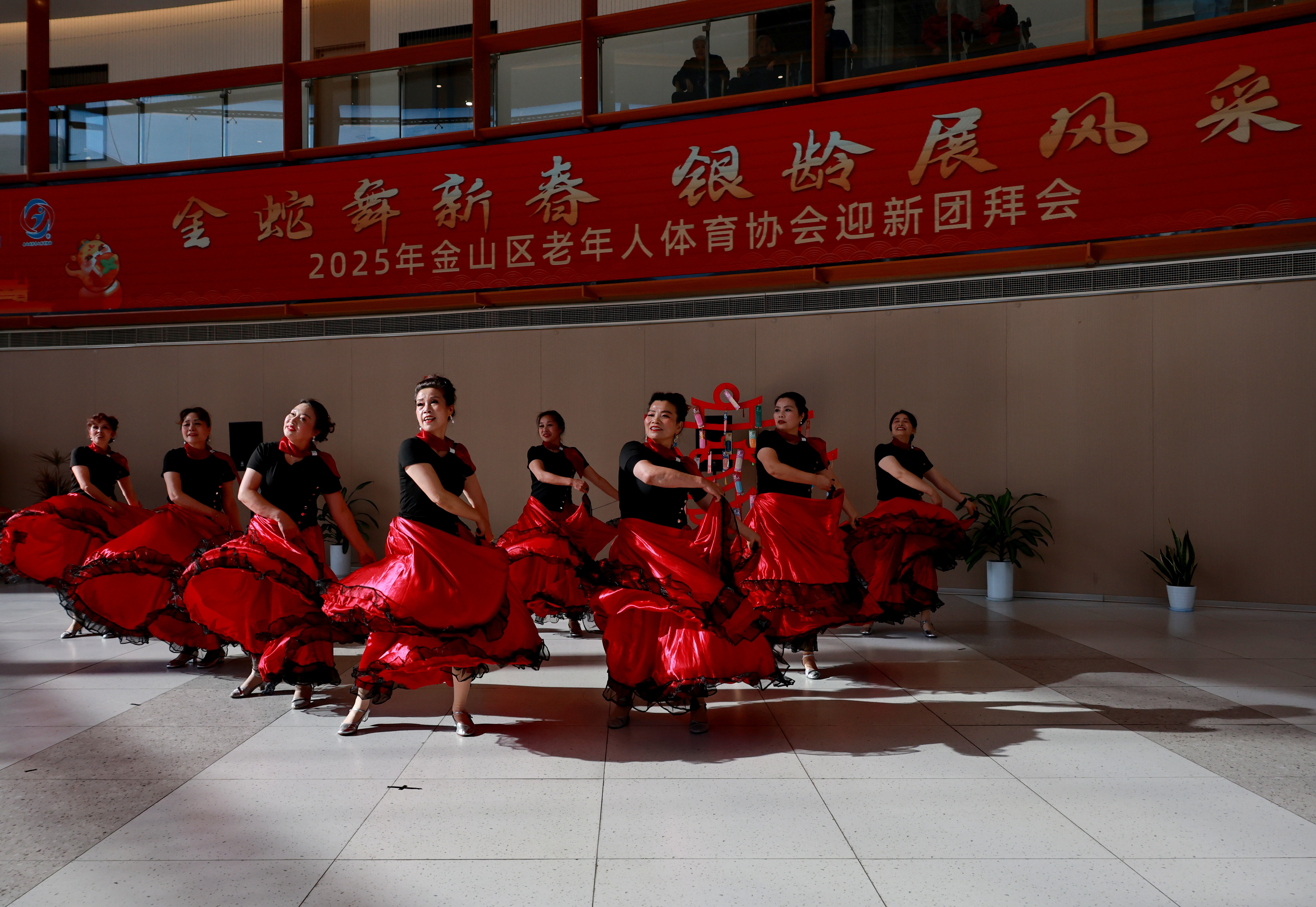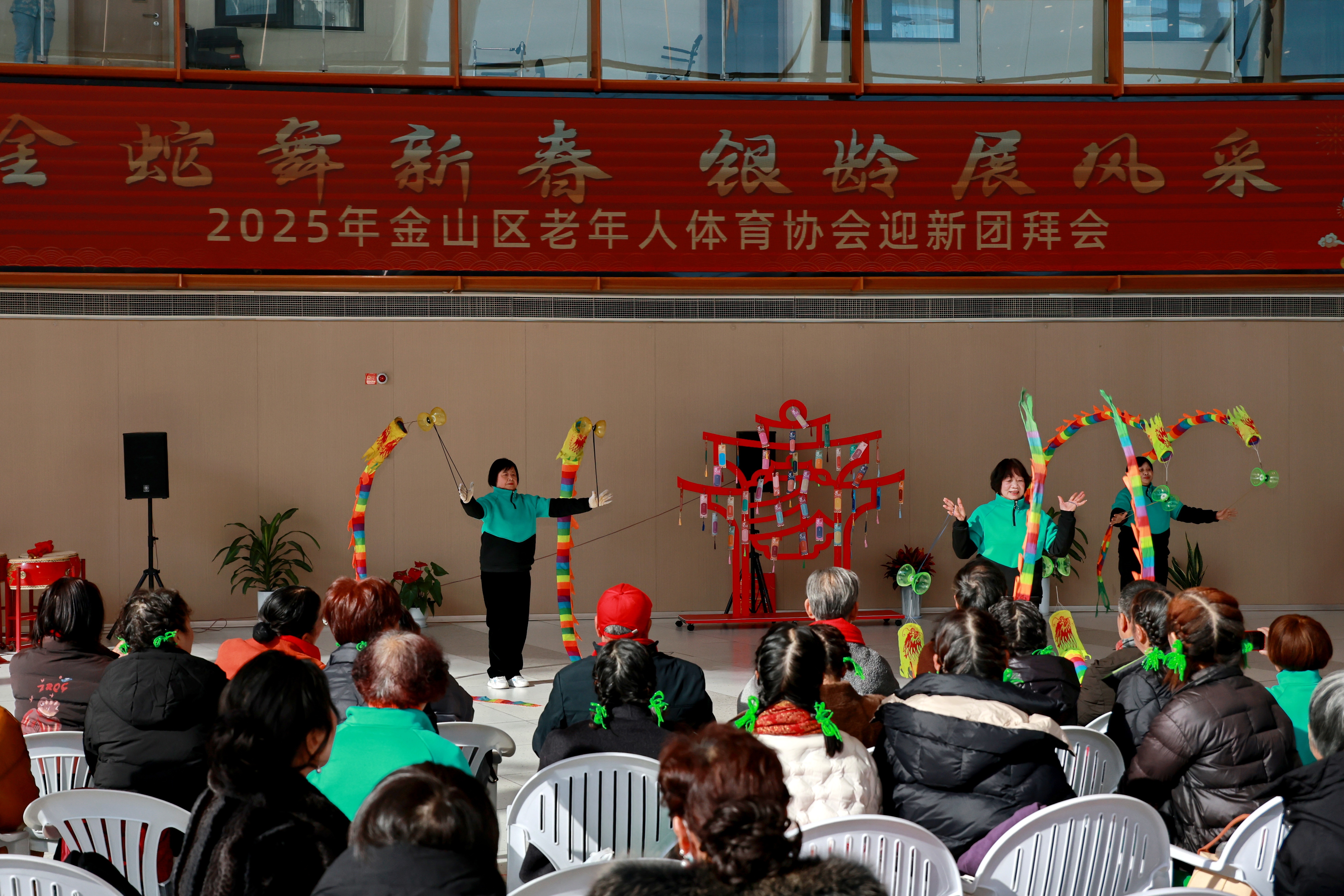 1月9日下午,主题为“金蛇舞新春 银龄展风采”金山区老年人体育协会迎新春成果展示活动在上海福安康护理院举行。
