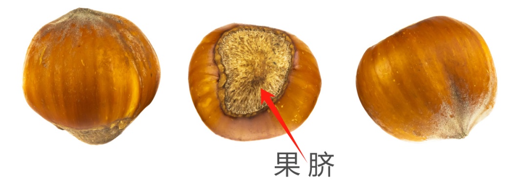 值得注意的是,榛子的果实在与总苞结合的位置有明显的果脐,也就是果实在开花的部位着生的斑痕。果脐是外果皮的一部分,并不能从果实上剥离。