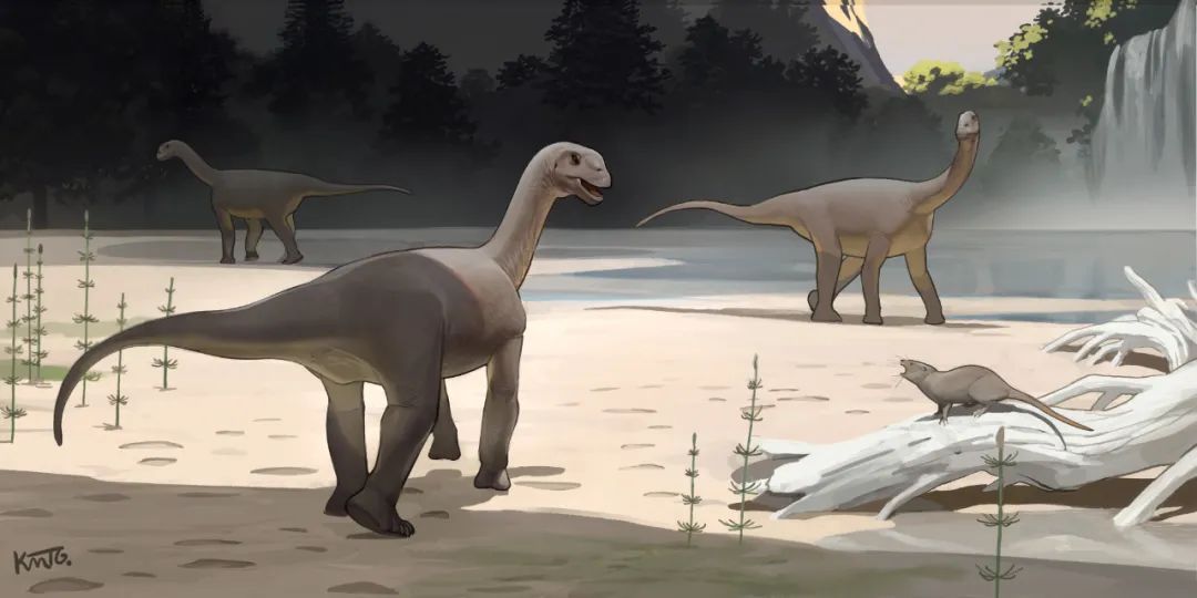 据了解,蜥脚类恐龙的成年个体与幼年个体有着巨大的体型差异,二三十米长的巨型蜥脚类恐龙,其幼龙刚破壳而出时体长还不到半米。