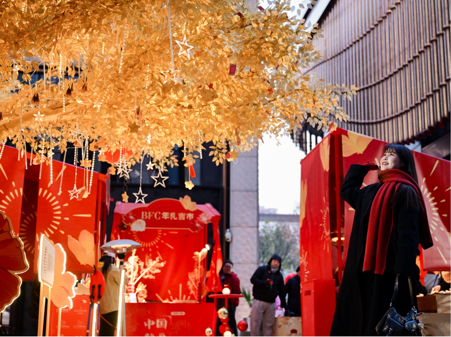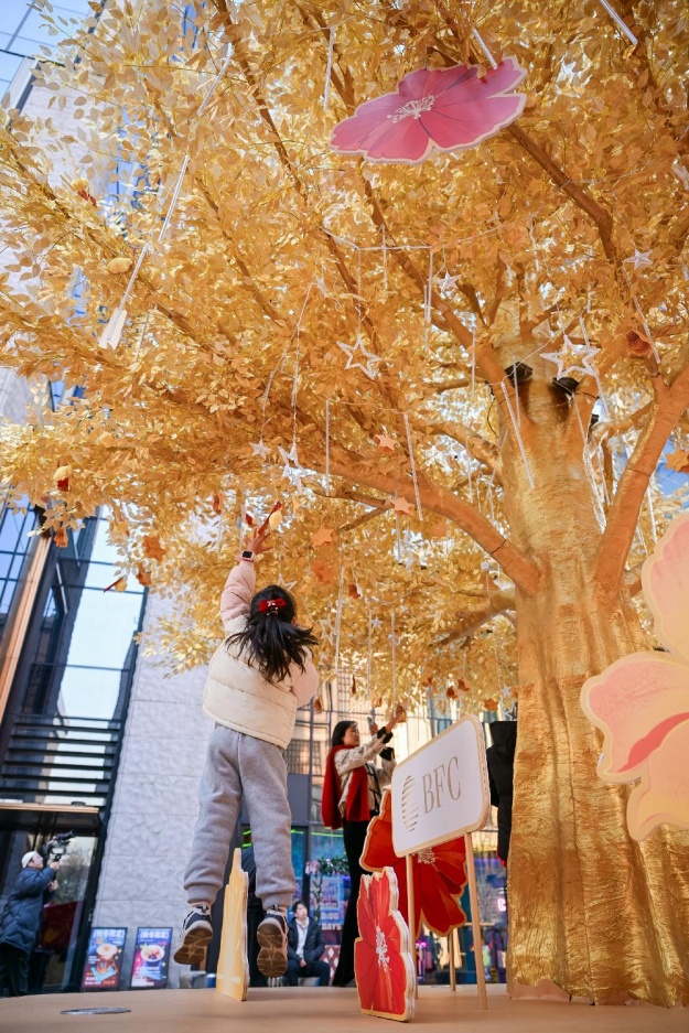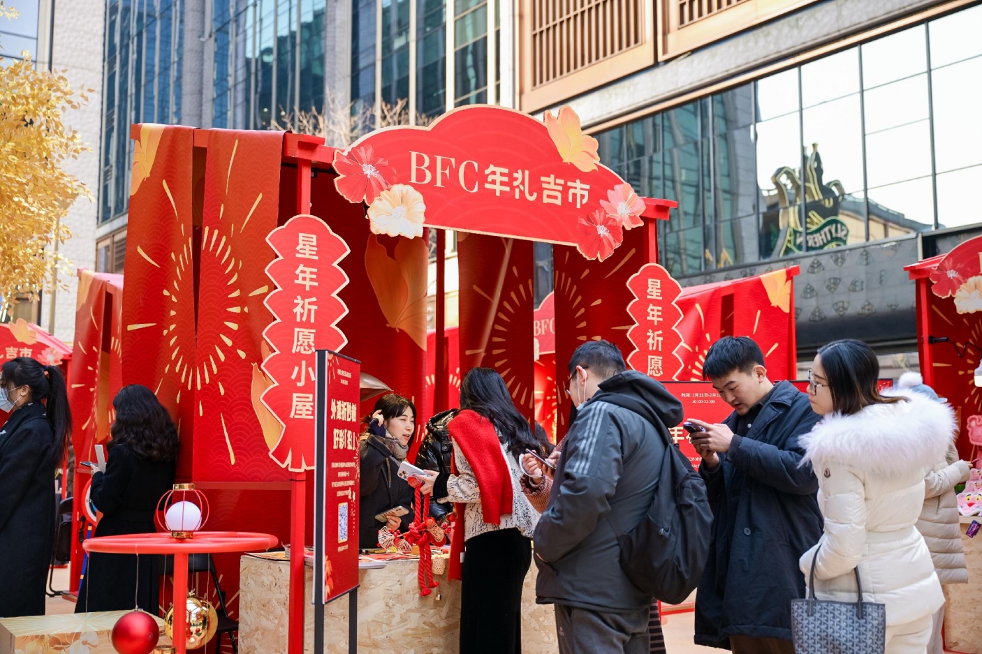 围绕外滩祈妙黄金树,“年礼吉市”缤纷呈现,汇集甄选新春好礼,同时开展写福字、传统糖画制作等趣味活动体验,让市民携友欢聚,在一起过“星”年。佳节团圆时刻,BFC也献上丰富互动玩法,市民游客不仅可化身寻宝达人,参与神秘“星”愿抽奖,更可将写下的祈福卡抛至黄金树端,赢得新年好彩“投”。
