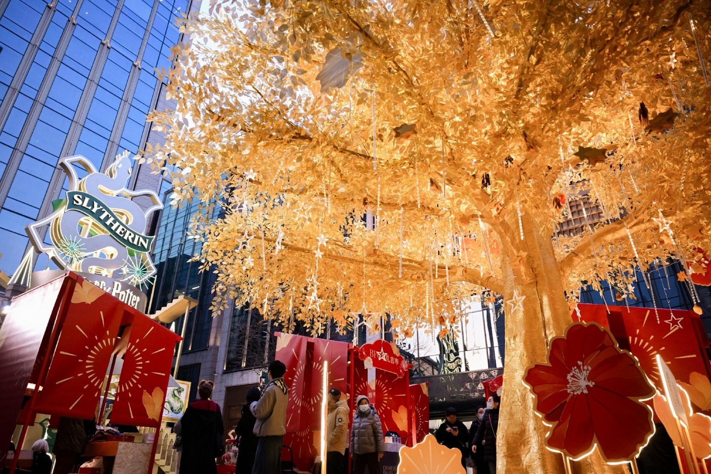 惊喜不止如此,外滩祈妙树的金色祥瑞也延续至霍格沃茨魔法世界。BFC广场的哈利·波特魔法树已经换上蛇院主题新装,绿金主题装饰交织点缀,灵动金蛇昂首向上,预示新的一年前景灿然。在上海豫园灯会华彩启幕的同时,方浜中路变身为充满神秘色彩的“外滩魔法街”,带领消费者从BFC的冬日魔法奇境一路穿越至豫园灯会的“山海奇豫记”,领略一场视觉与文化交织的奇妙之旅。