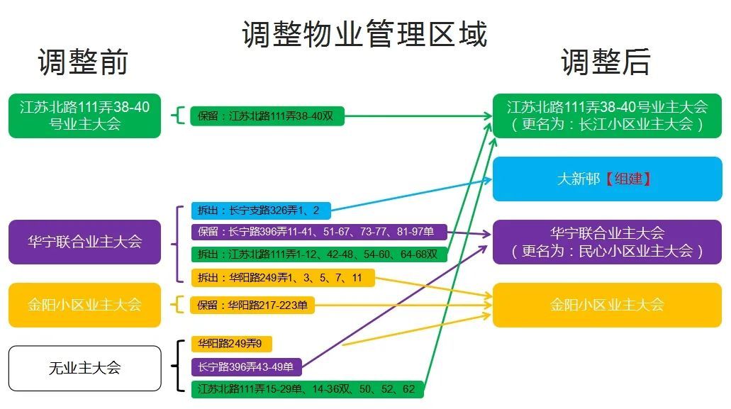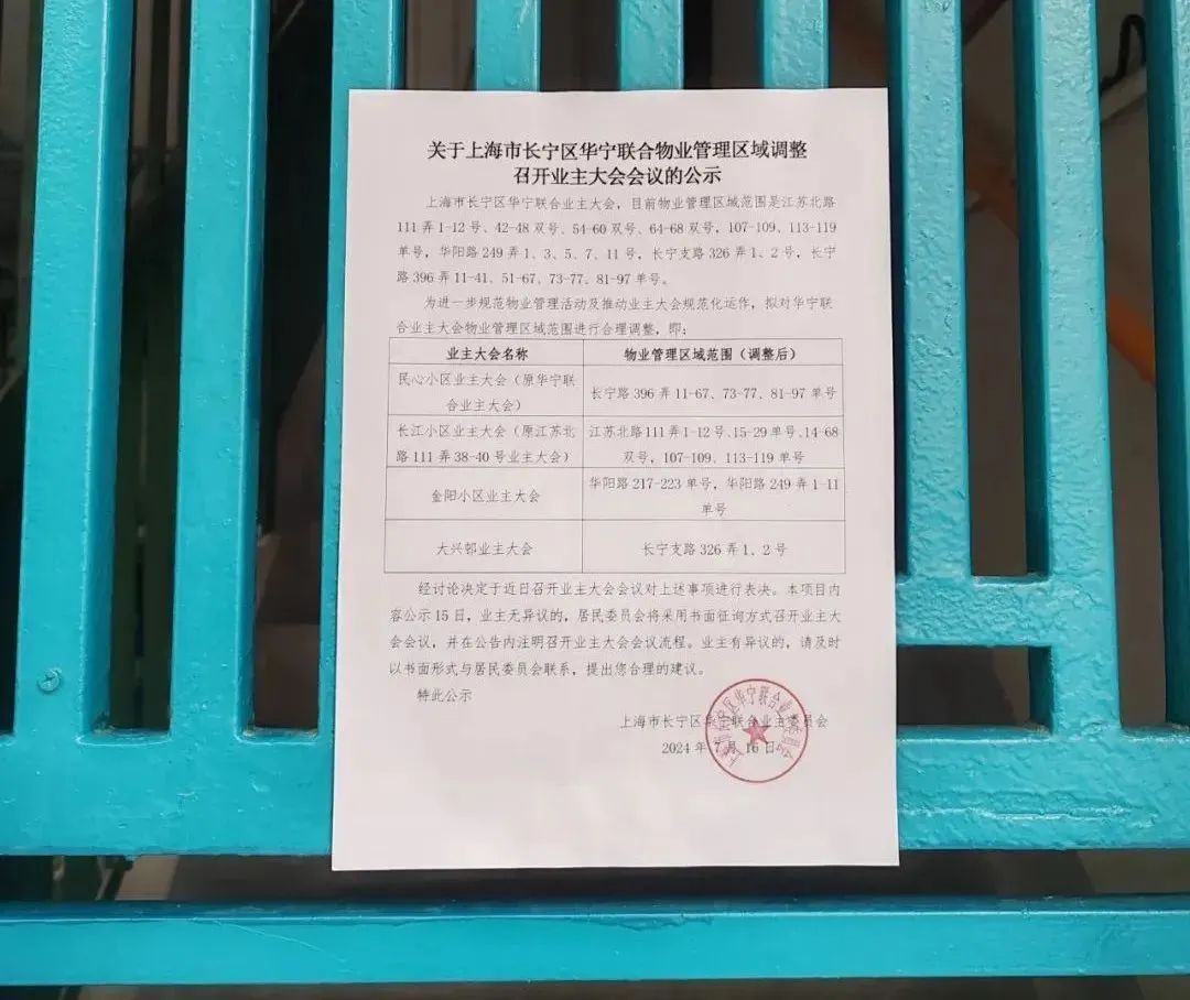 为了确保每一步都合法合规,华一、华三、长二3个居民区严格按照流程进行征询和公示。首先,3个居民区分别召开了居民代表大会,向楼组长和居民代表宣传了物业管理区域调整的必要性和具体方案。然后,按照时间节点张贴公告,做好户主清册的梳理工作,确保每一户业主的意见都能被收到。