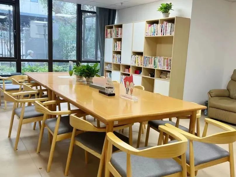 本次升级改造对浦润苑居民区党群服务站品润室的阅览区和茶水间进行了空间整合。在保留原有功能的同时,增设了居民休憩区,居民们既可以在这里休憩阅读,也可以参与西式烘焙等培训课程,享受美食制作的乐趣。