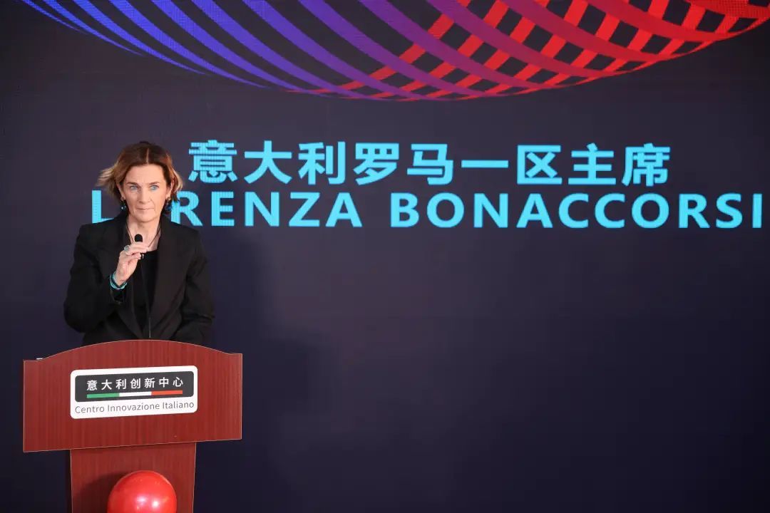 活动现场,董依雯、薛侃、周海鹰、Lorenza Bonaccorsi、金慧等与会嘉宾共同为意大利创新中心揭牌。