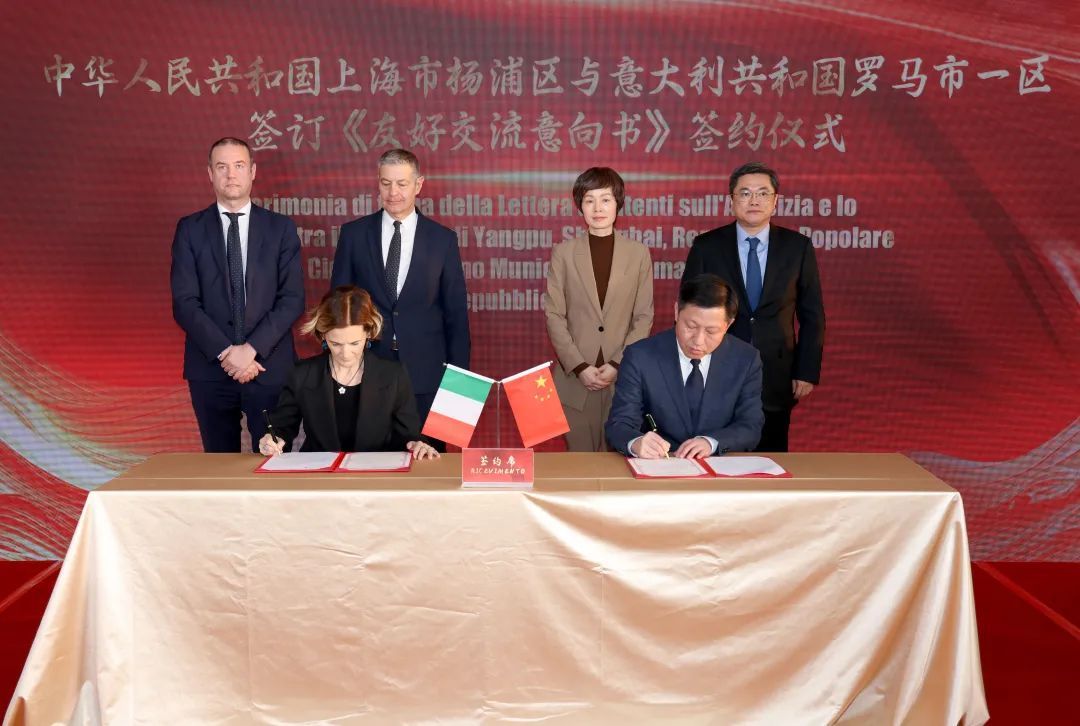 在董依雯、薛侃等与会嘉宾的见证下,周海鹰与Lorenza Bonaccorsi分别代表杨浦区、意大利罗马市一区签署《城区友好交流意向书》,并互赠纪念品。根据意向书,双方将加强交流互动,促进在经济、文化、旅游等领域的合作,增进两地人民友谊,携手共同繁荣发展。