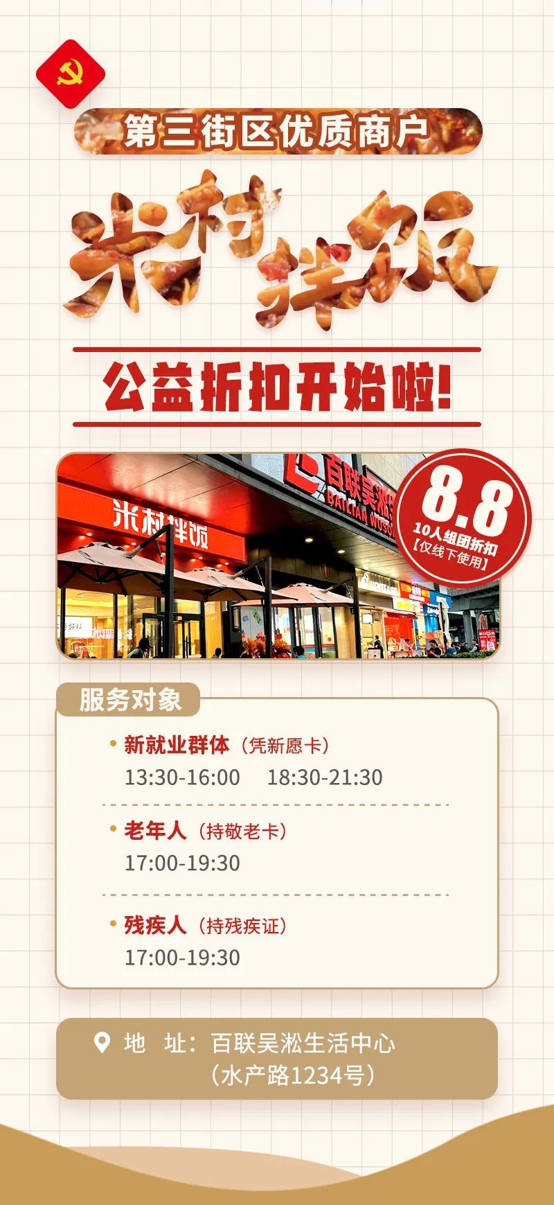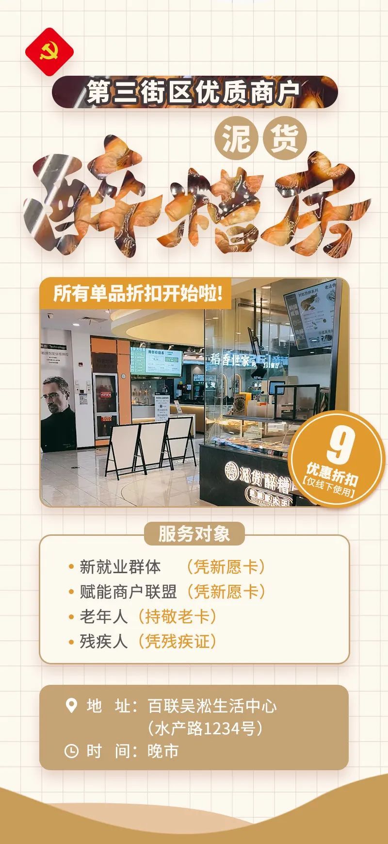 活动吸睛,商圈友好聚人气。借助党群中心的活动资源宝库,匠心定制“星辰闪耀 逐梦百联”等大型特色活动,并将其精准送进商圈,为商圈带来人气活力。聚焦骑手群体关键需求,全力推动百联全周期构建骑手友好型商圈生态,创新推出“新愿卡”优惠机制,餐饮优惠直击心坎,有效引导商圈积极主动践行社会责任担当,实现经济与社会效益双赢。
