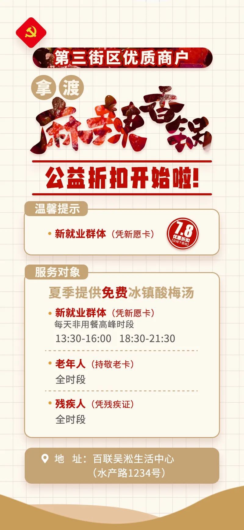 文化沁润,服务多元促和谐。巧妙融入“第三街区指路牌”“来吧新力量”等特色文化元素,街道党群中心成功实现功能的蝶变。从冬至的团圆饺、寒潮的暖胃茶,到专业实用的急救培训、法律援助课程,一系列精心策划的活动用温情与专业精心编织起幸福与安全的坚固防护网。同时,凭借公益课程的桥梁作用,成功化解商户矛盾纠纷,扮演起街区和谐发展的关键润滑剂与强力黏合剂角色,有力推动党群中心功能向多元化、深层次领域大步迈进,逐步成长为街区文化传承、治理创新、服务升级的综合性优质平台。
