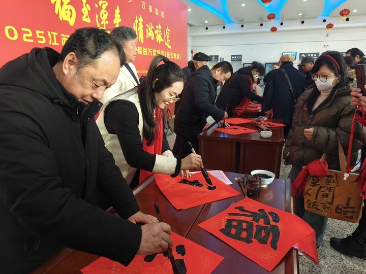 2025年春节,是春节申遗成功后第一个世界“非遗”版春节。在春运首日,连云港市文旅局和高铁上海局集团有限公司徐州车务段党委、上海铁路公安局徐州公安处党委联合主办这场“乘高铁 赏非遗 大圣故里过大年”活动。“回家的路就是最美的风景,举办这样的活动可以更好地宣传地方传统年俗,弘扬中华优秀传统文化。”连云港站站长蒋玉国说,“我们希望在服务春运的过程中,搭建友善沟通的桥梁,争做城市文明建设的模范、优质服务的模范、乐于奉献的模范。”