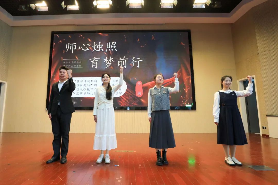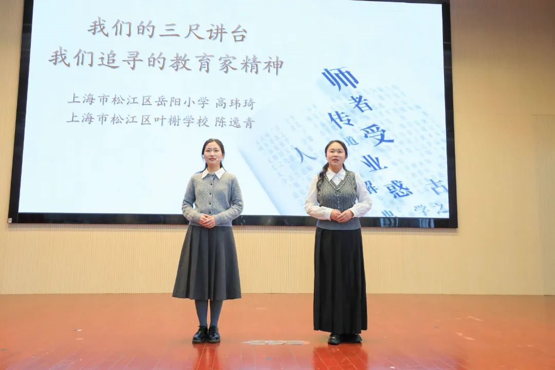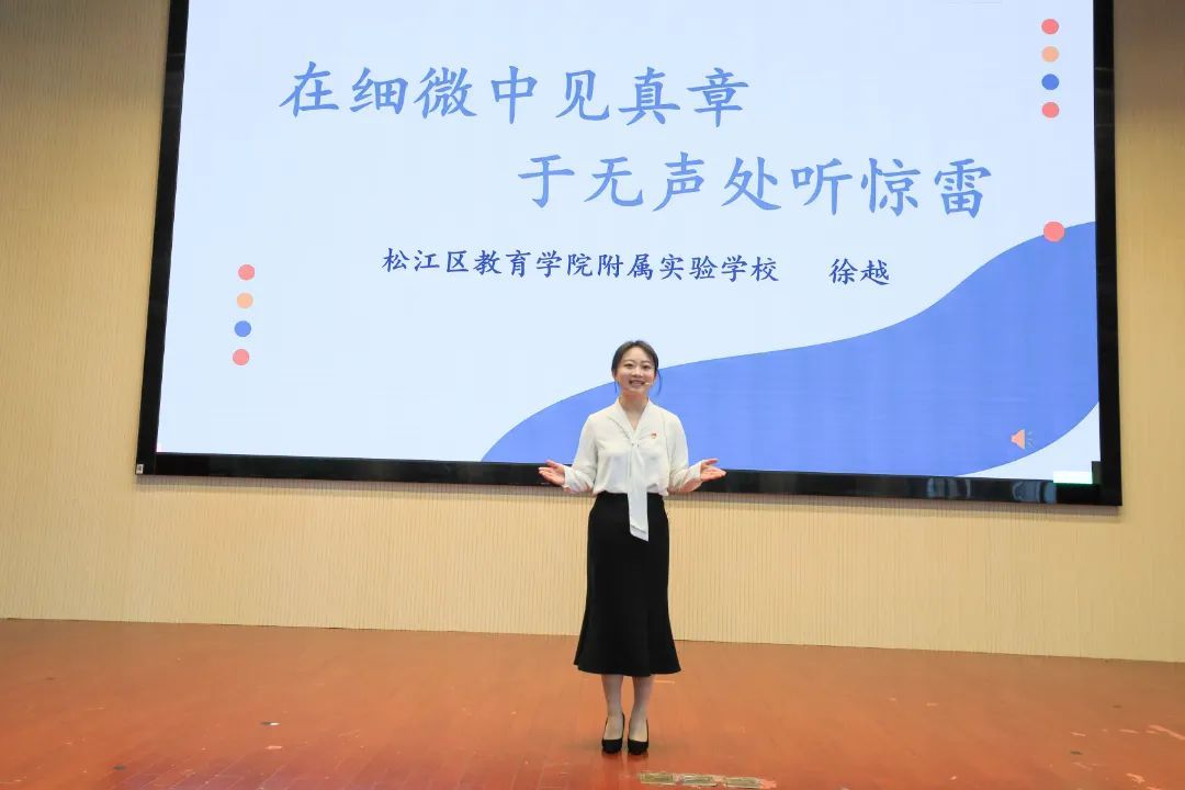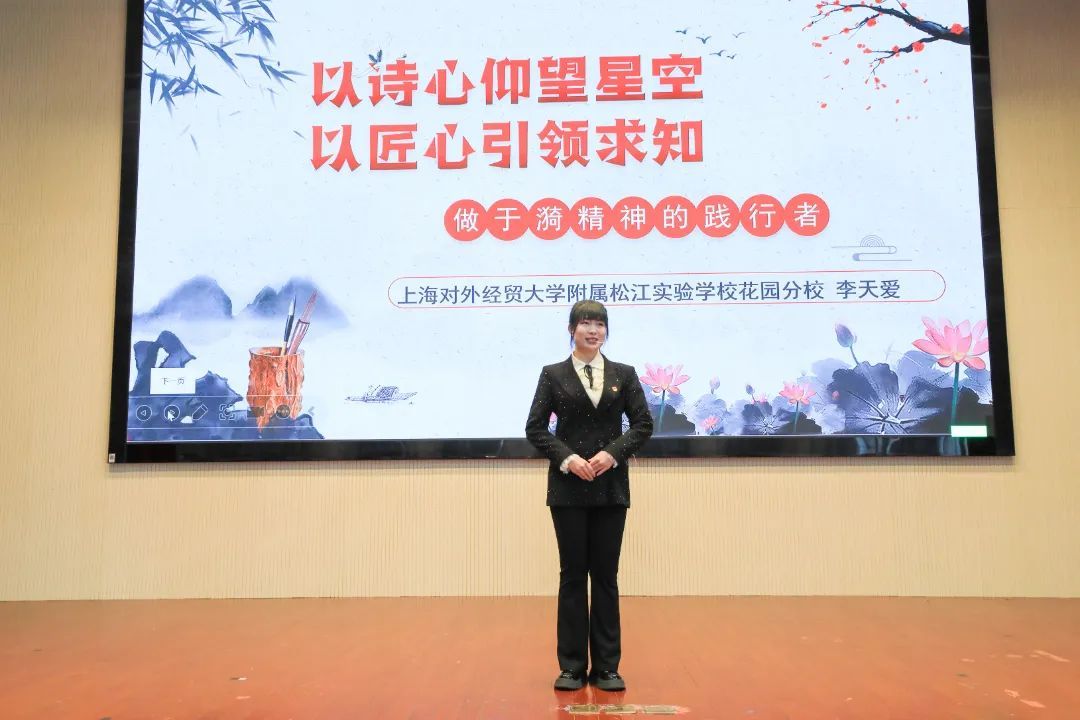 来自立达中学的王聚作题为《学做一名像于漪老师一样的“大先生”》的演讲,讲述了自己的教育工作历程和和学于漪的点滴;岳阳小学的高玮琦、叶榭学校的陈逸青在《我们的三尺讲台,我们追寻的教育家精神》的演讲中,联系自己的教育教学经历诠释了对“教育家精神”的理解;祥泽幼儿园王丽萍、机关幼儿园高慧纯、九亭幼儿园宗翠玲、明华幼儿园秦佳宇共同带来《师心烛照,育梦前行》演讲,分享了各自在工作中的教育故事和学习于漪精神的多种方式;松教院附校的徐越和上经贸大附校花园分校的李天爱,向大家讲述了她们从日常工作中汲取灵感,全力以赴备赛的感人历程。