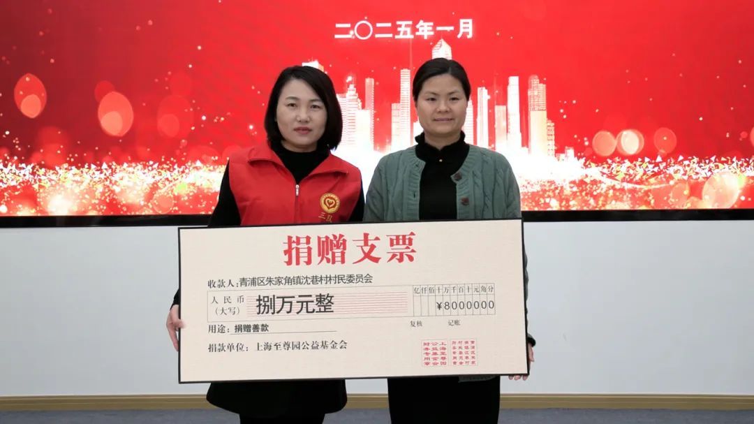 现场,上海至尊园公益基金会代表向结对的朱家角镇沈巷村、薛间村、周家港村,练塘镇东厍村移交了捐赠支票,共32万元善款用于今年四村困难家庭帮扶和纯老家庭新春慰问,这已是至尊园集团、上海至尊园公益基金会与这些村结对帮扶的第八年。