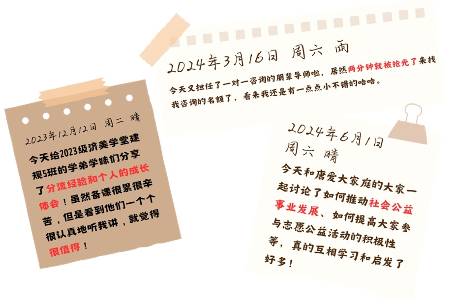 于是,她担任朋辈导师和小班主任,并在微信公众号小红书、B站等平台,分享学习生活经验,为大家答疑解惑,至今已陪伴了百余名同学。
