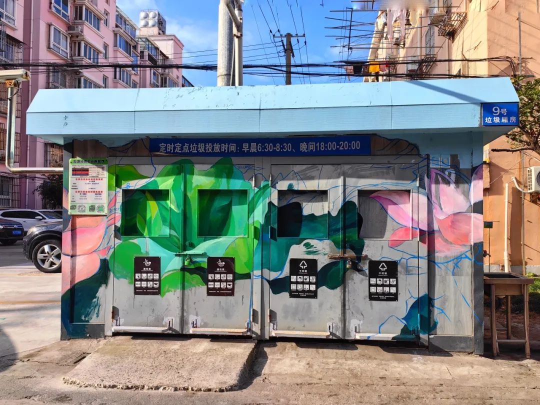 为焕新垃圾厢房的颜值,提升居民的生活质量,宝城新村居民区党总支决定实施“垃圾厢房彩绘增颜”项目,通过对9号垃圾厢房进行彩绘修复,营造一个更加美丽、和谐的居住环境。项目中,设计师根据小区的整体风格和居民的需求,选用了生动、和谐的图案和色彩,既美化了垃圾厢房的外观,又展现了社区的活力与温馨。