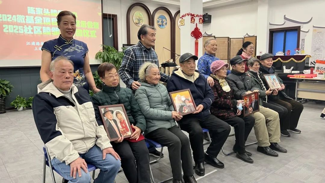 1月15日,在陈家头睦邻中心2024年微基金项目成果展示会上,来自社区的四队金婚老人夫妻代表获赠了一幅装订精美的金婚合影照片,每一幅金婚合影照片背后,都有一段可歌可泣的爱情故事。