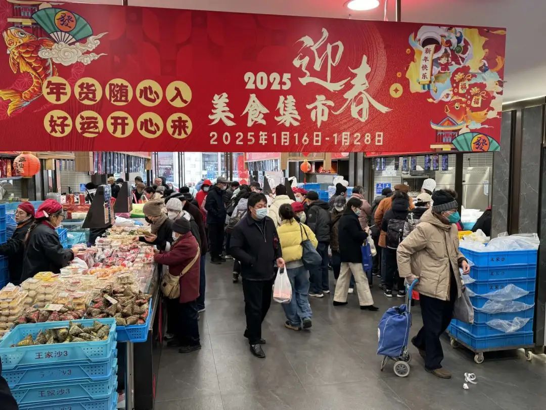 大门口新贴的大型春联、火红的电子价目屏、随处可见的“福”字窗花和喜庆装饰品……美食节开幕当天,换上了“新年装”的王家沙总店涌动着一派红红火火的景象,让前来置办年货的人们感受到了浓郁的新春氛围。