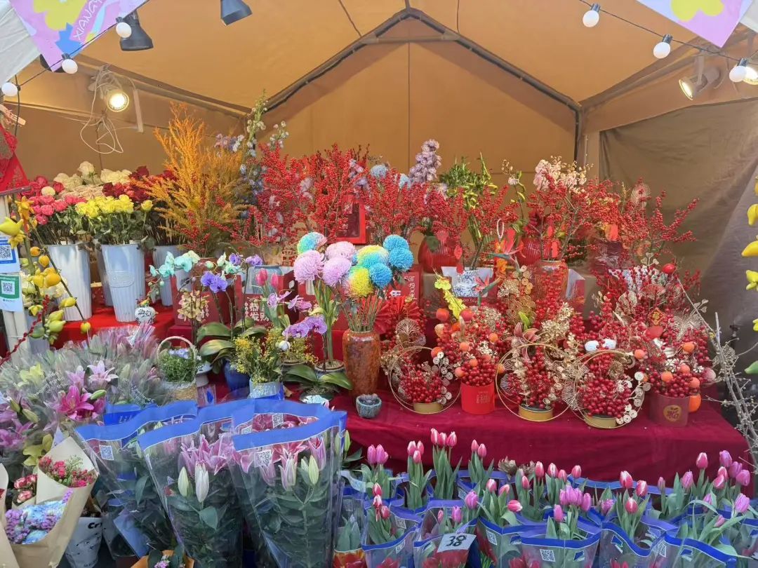寓意丰盛祥和的大花蕙兰、招财进宝的银柳、健康长寿的长寿花最受长辈喜爱;象征幸福美满的蝴蝶兰、快乐无忧的文心兰则适合新婚或是乔迁新居的朋友;还有代表喜迎贵客、平安幸福的仙客来、鸿运当头的朱顶红,都是春节期间深受市民喜爱的年宵花卉。现场,花市的摊主们精心帮前来选购的市民挑选搭配,并将养护的知识分享给大家。