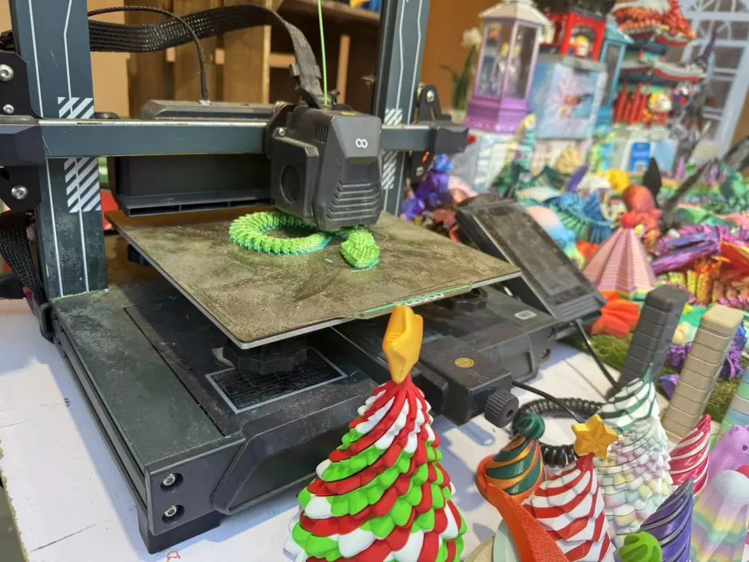 市集里,非遗文创摊位汇聚了各类创意满满且不失精致的非遗特色文创产品,非遗点翠、珊瑚化石、手工编织等工艺品精致独特。孩子们则更偏爱3D打印、面部彩绘、手工羊毛毡等互动环节。此外,集市还特地邀请了乔家栅、鸿瑞兴、第二食品等上海老字号,给市民朋友带来年货、美食。
