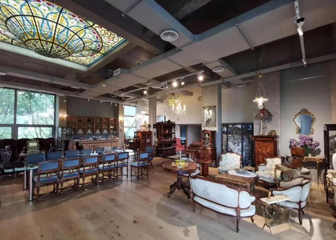 “这是我的创作作品,马勒别墅的梧桐窗。我是在卢湾区长大的,明德里附近就是马勒别墅,现在还经常去那里兜兜转转。”谈及自己的成长,她说上海人的讲究和追求美好时尚之风犹如海派基因一样深入她的骨血。彭阳至今记得,小时候跟父母参观陕西南路红房子、延安中路展览中心、淮海中路的襄阳公园,都会打扮得干净体面,充满仪式感。而今留在马勒别墅那三幅硕大的彩色玻璃窗,也是彭阳最津津乐道的作品之一,更是自我对岁月的美好追忆。