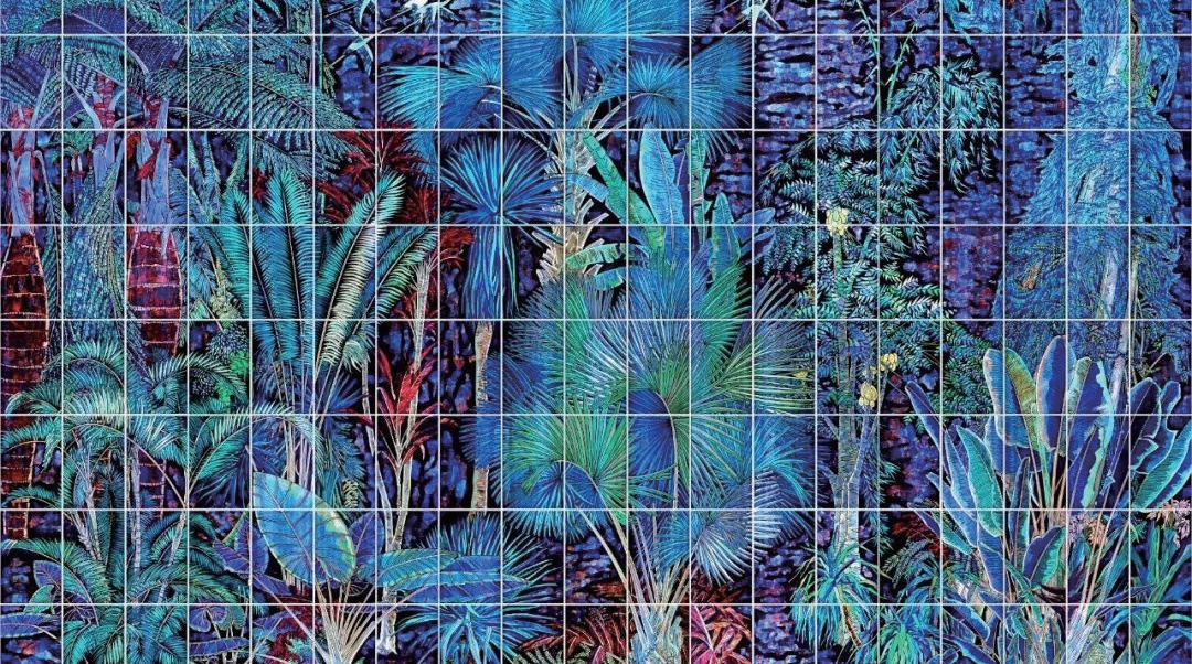 2010年在创作文化广场的《生命之源》巨幅作品时,彭阳提出了在传统的嵌条方式之外,用嵌粉取代嵌条的创新工艺方法,对此,陈伟德老师很赞赏认同。这样一来,在表现植物细节时,线条便有了粗细变化的灵动,不再是一成不变的。她认为,大写意的作品需要有动感与活力,而粗细不一的线条恰好能够表现出这种动感。