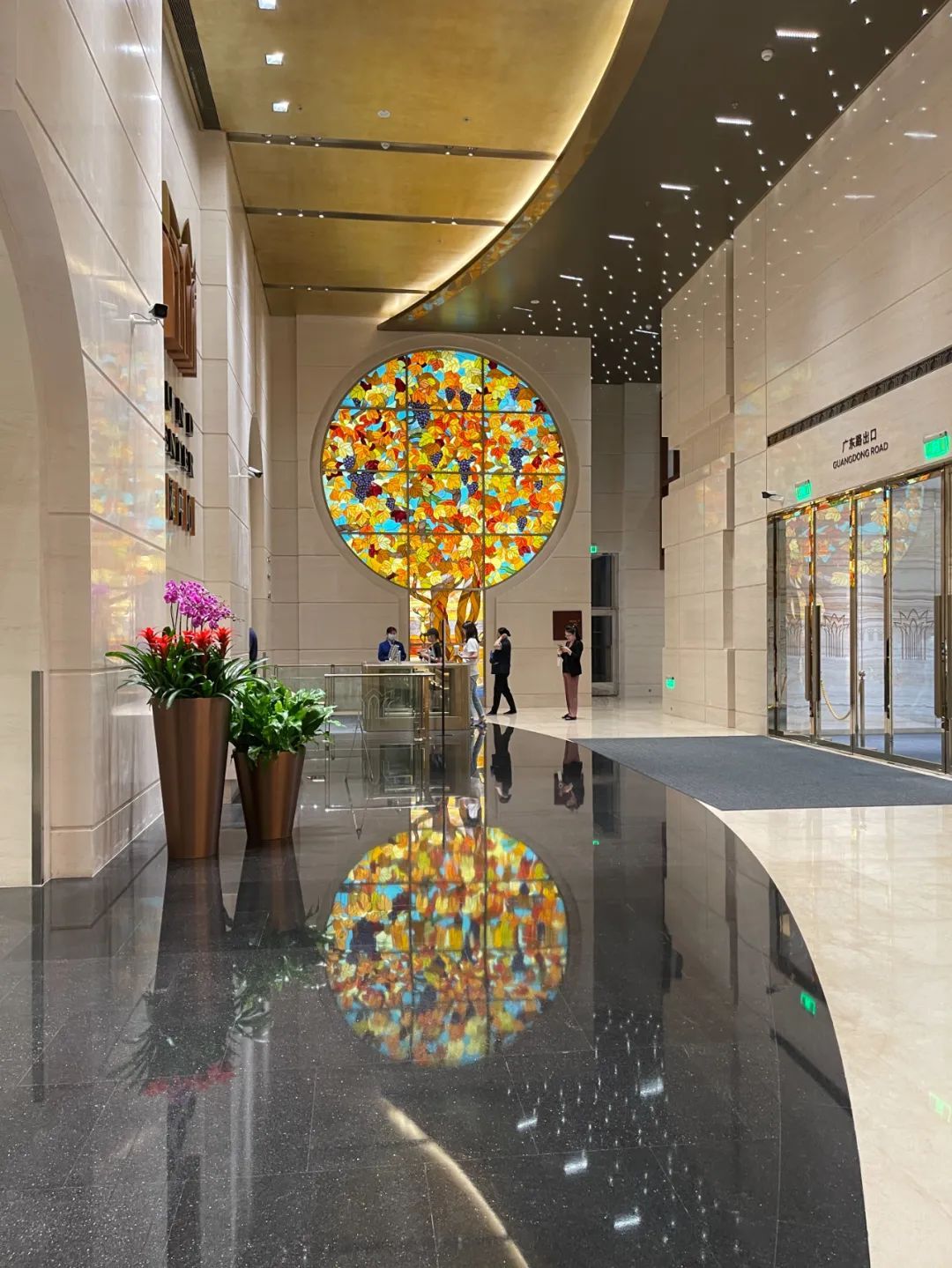 彭阳与玻璃的缘分,还要追溯到23年前,上海交通大学艺术设计专业毕业的她刚拥有自己的美术设计公司,一次偶然的机会,她结识了旅法画家陈伟德。在拜访陈老师的工作室时,她第一次见到了彩绘玻璃。那些充满奇幻色彩的作品与光影、空间完美结合,带给了她强烈的视觉冲击与美感。
