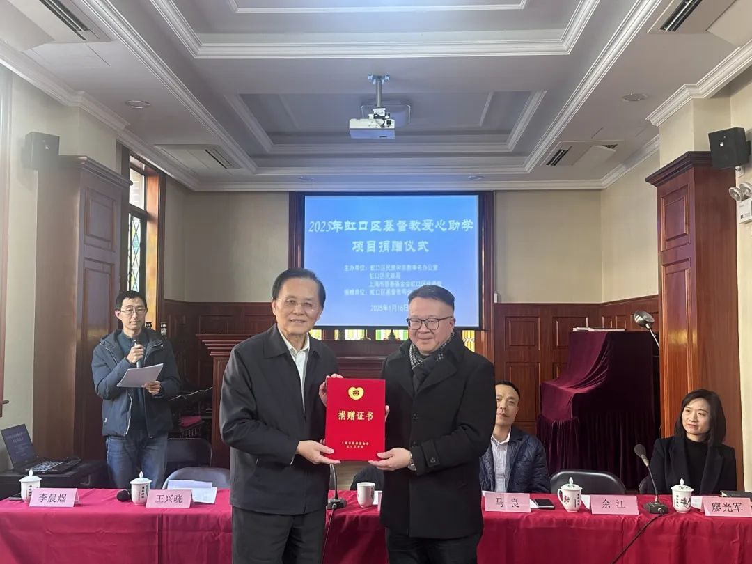 1月16日下午,由区民政局、区民宗办、上海市慈善基金会虹口区代表处主办的虹口区基督教爱心助学项目捐赠仪式在景灵堂举办。仪式现场,主办方向北外滩街道、四川北路街道、江湾镇街道以及虹口区基督教推荐审核的困难家庭学生送上了满载关怀与希望的慰问信,鼓励他们保持乐观向上的心态,积极面对今后的学习与生活。上海市慈善基金会虹口区代表处会长管维镛等出席捐赠仪式。