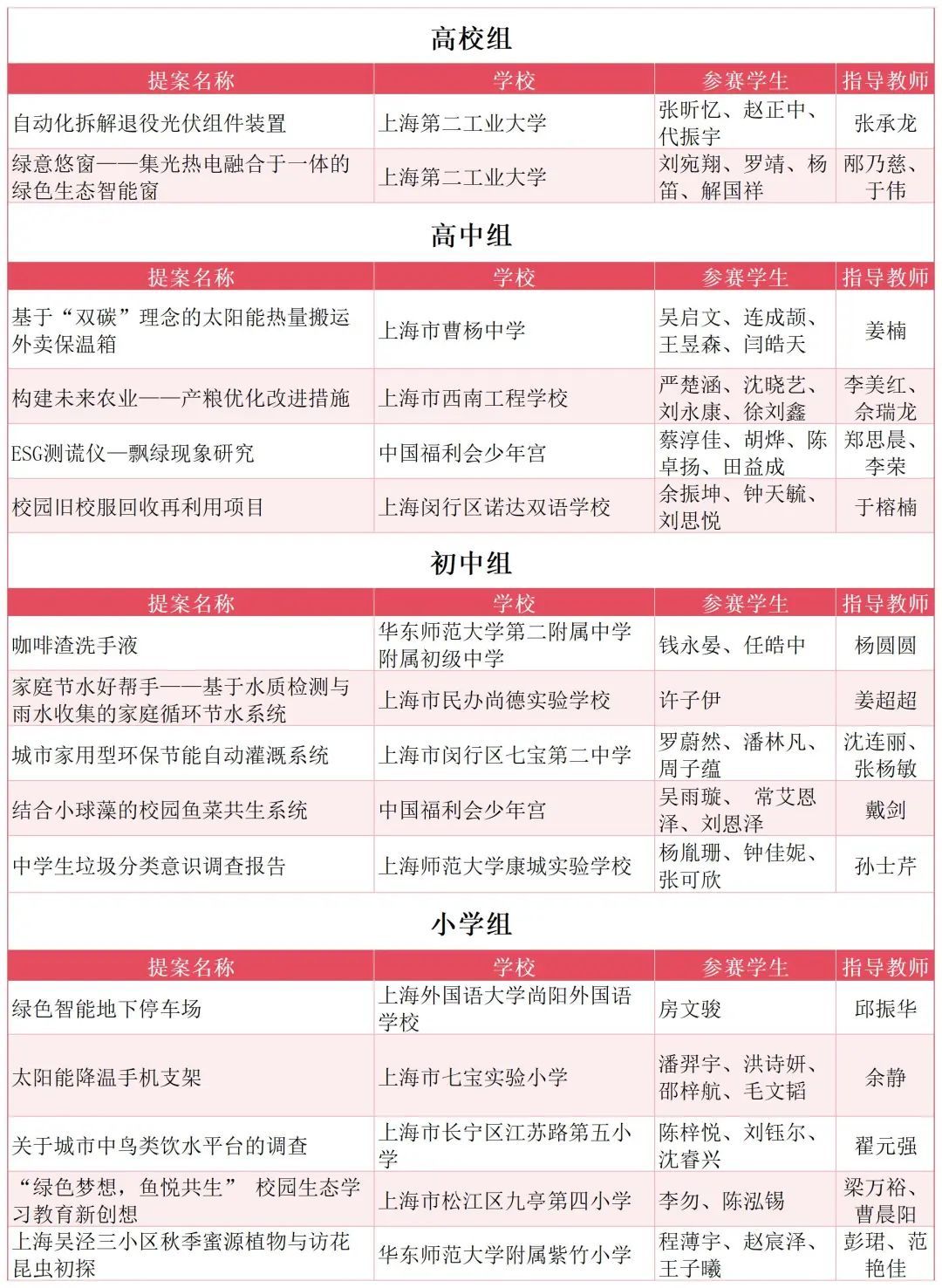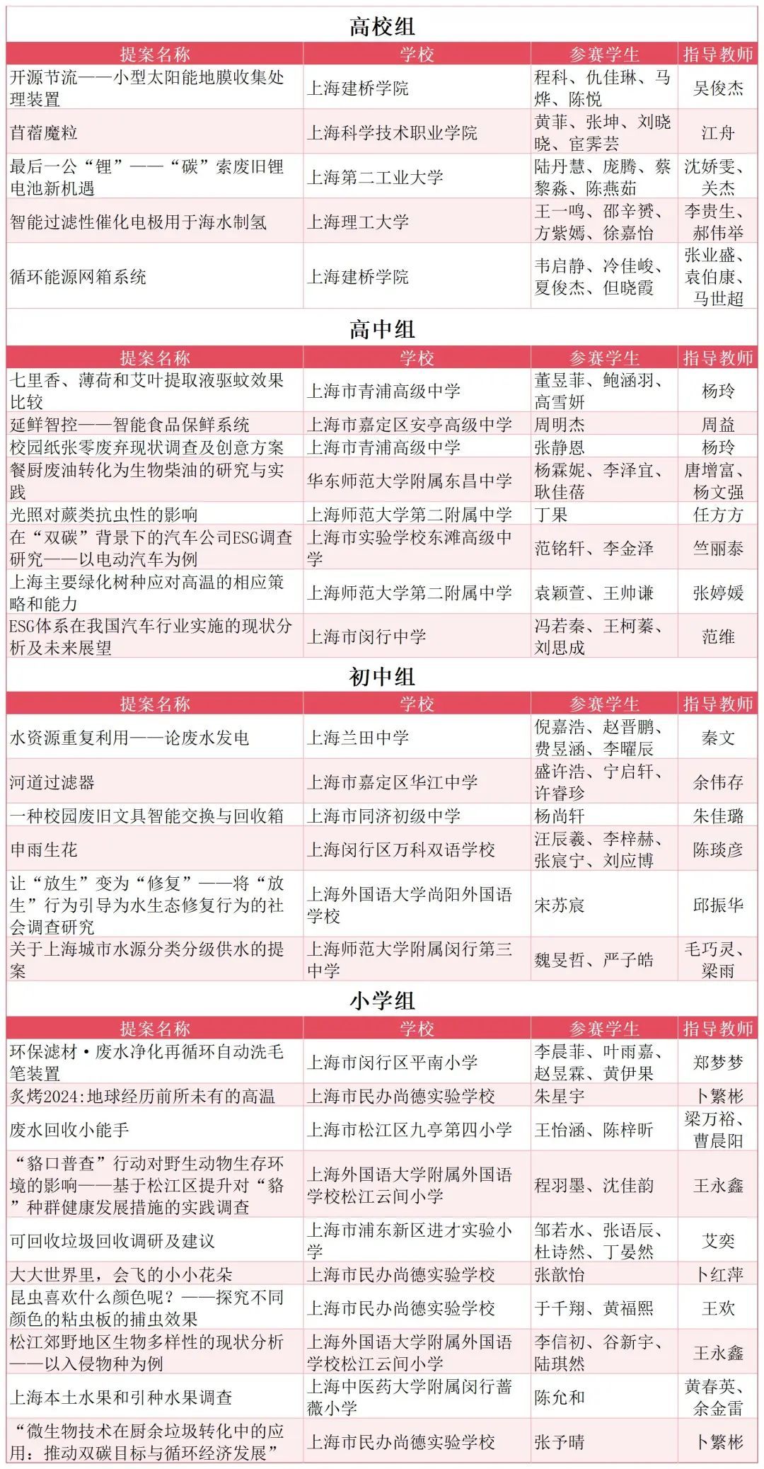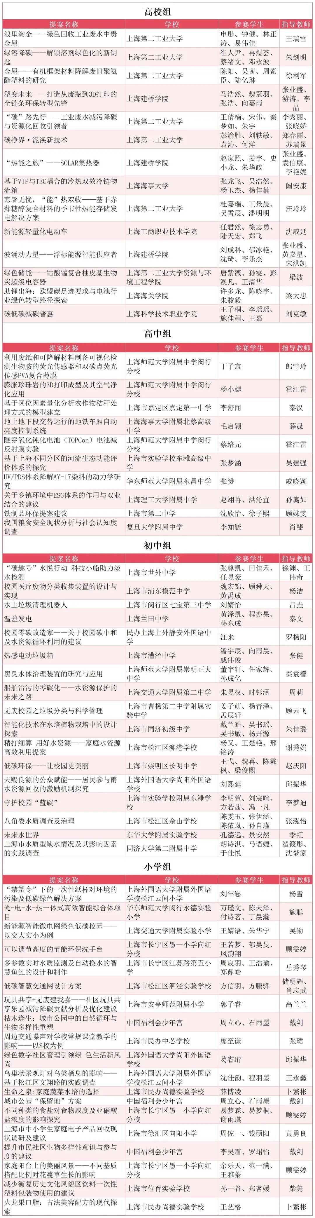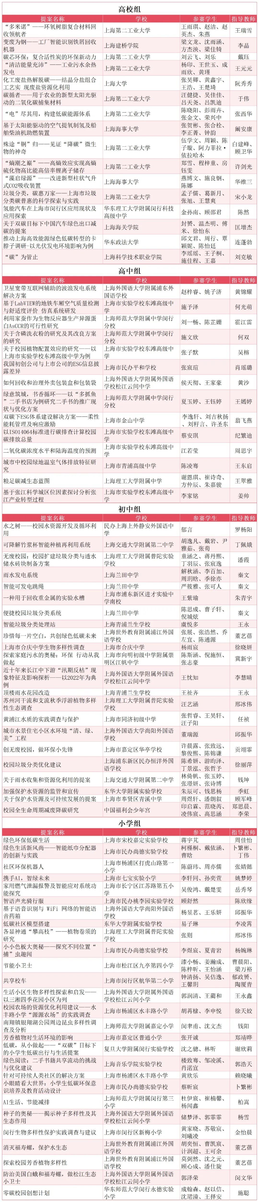 本届赛事共收到来自140余所大、中、小学校的349份提案。同学们聚焦绿色生活方式、生物多样性、无废校园、水资源保护、爱粮节粮、ESG、新能源开发与利用技术及碳管理等八大主题,深入开展相关的科技发明与实践调查活动。经专家组审核,有48份优质提案脱颖而出,成功闯入决赛。