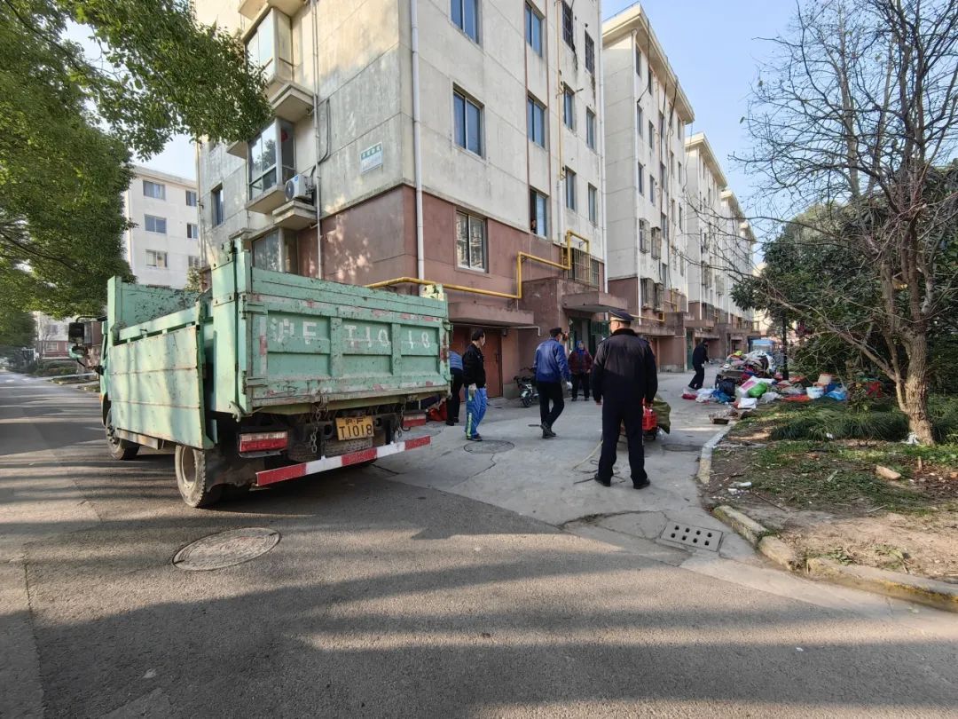 堆积的废弃木材、纸板箱、废弃瓷砖等杂物一车又一车被运出小区,“楼道减负”行动实现了令人欣喜的成效。