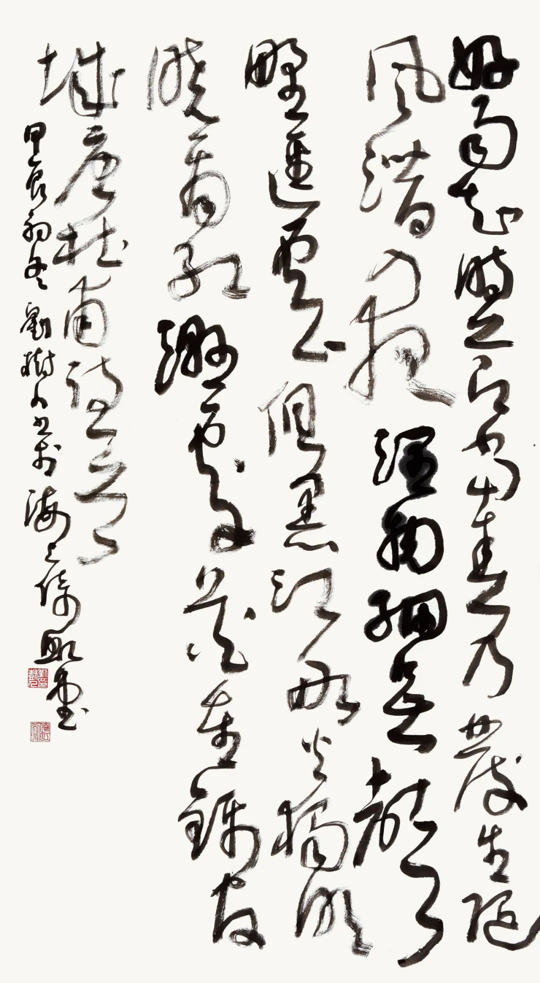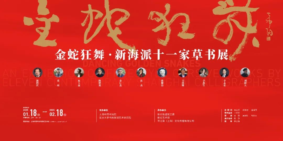 迎新风鹏天地间,金蛇狂舞龙行远。在新春脚步走近之际,上海中国书法院和复旦大学书画篆刻研究院主办,新虹街道和新虹艺术馆等单位承办的“金蛇狂舞——新海派十一家草书展”1月18日正式开展。 草书由于其本身的书写性、抒情性、写意性等要求,在很大程度上契合了当今书法人希望张扬个性,表现自我,凸显性灵的需求。此展结集新海派十一家草书作品,皆根植传统,循草书之法理;亦张扬个性,呈自家之意趣。