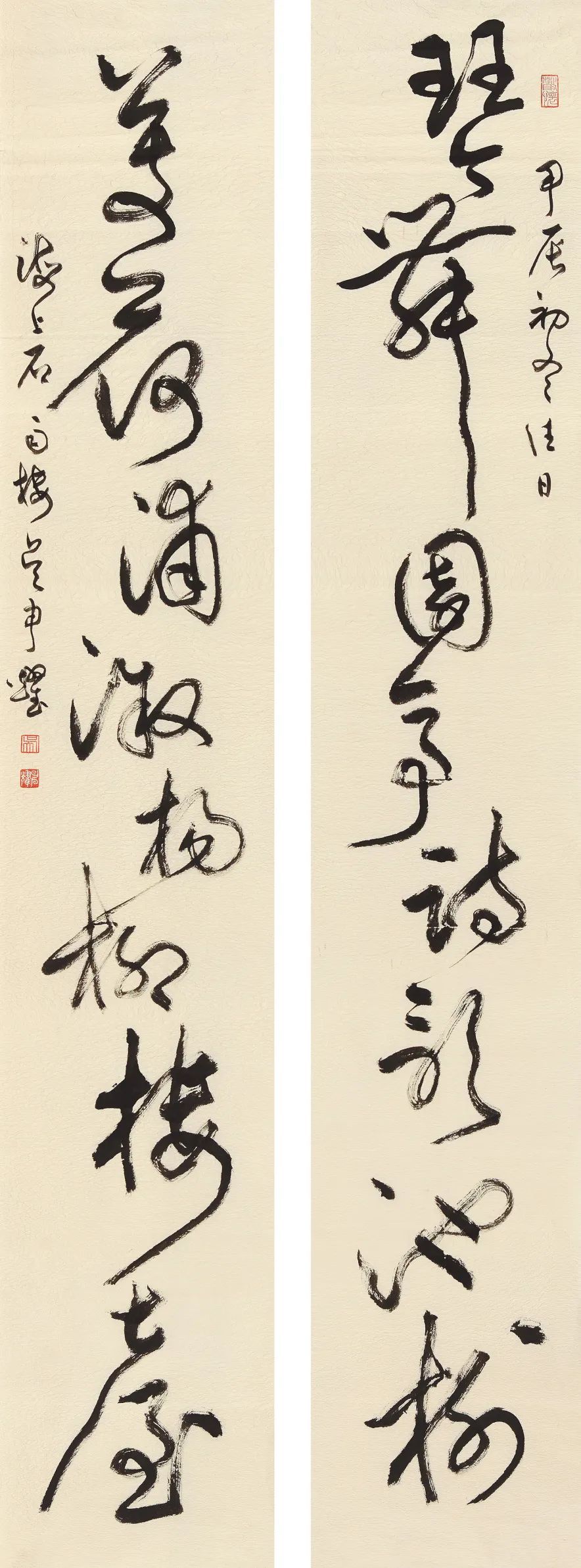 余仁杰 笔落鬼神联 246cm×52cm×2