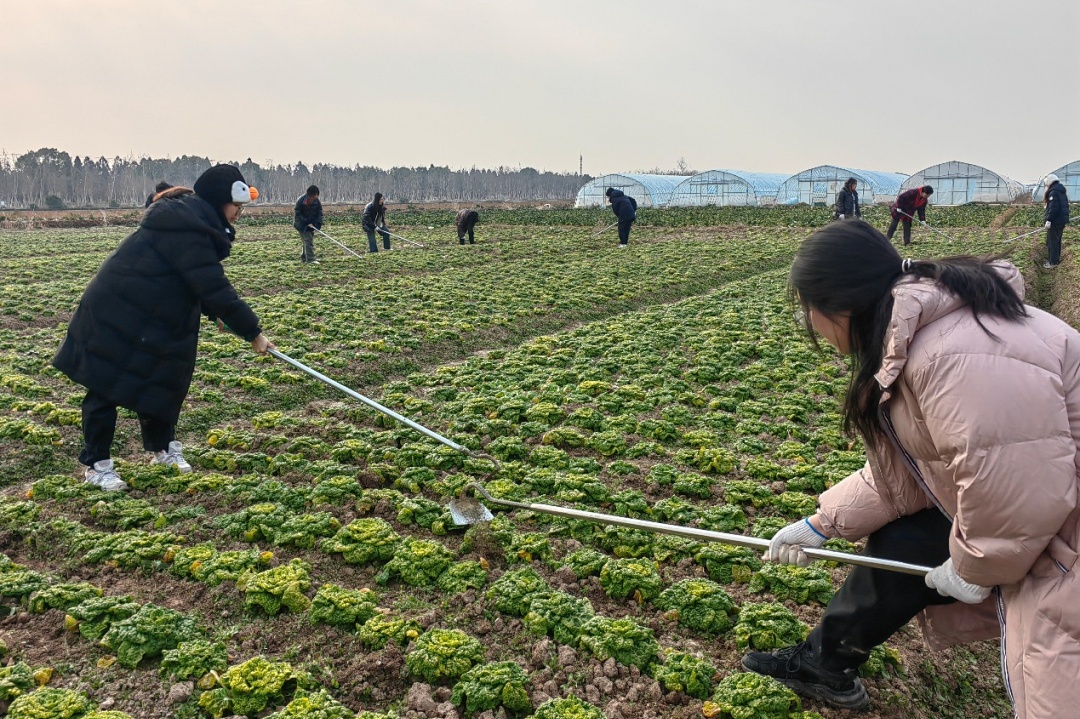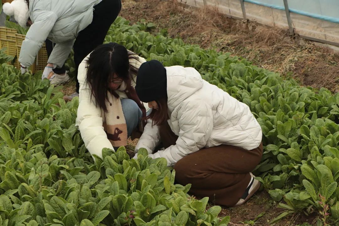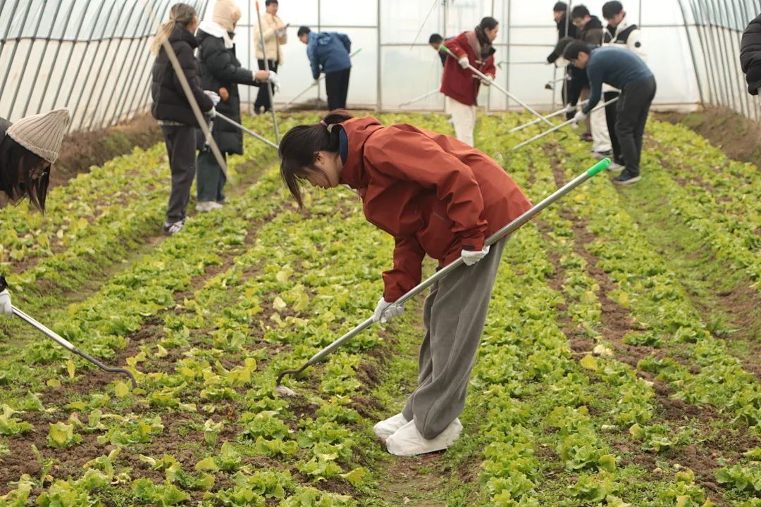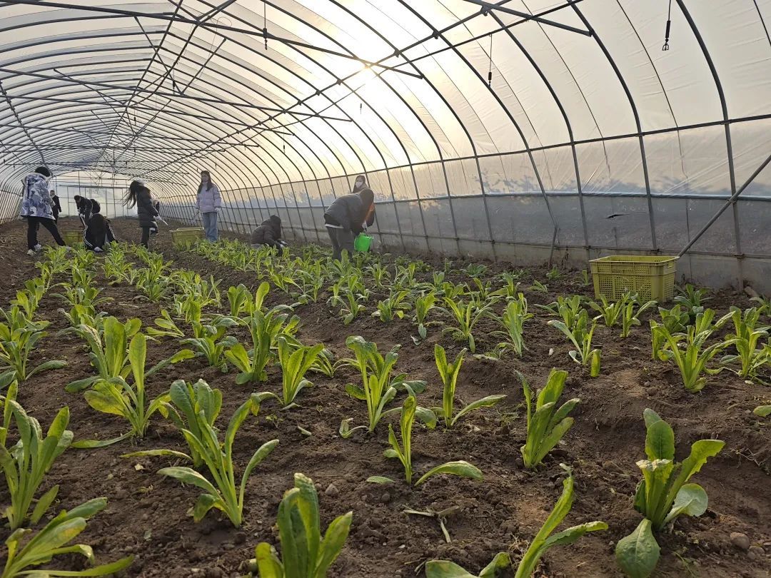 寒风凛冽,同学们开启了一场与杂草的较量。他们弯着腰,穿梭在农作物之间,手中的锄头有节奏地起落,把杂草连根拔起。在蔬菜大棚内,同学们辛勤地犁着土地,汗水浸湿了衣衫,却没有一丝懈怠,沉浸在了汗水浇灌的耕耘之乐。不远处的蔬菜收割与分拣共分为两个大组,分别收割油菜与黄心菜。同学们戴上手套、拿起弯弯的小镰刀,开启了田垄间的“精挑细选”……