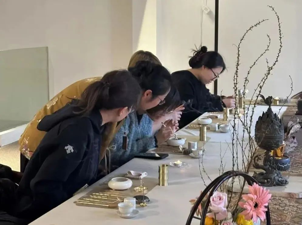 学习固然好,但要有足够的时间,如果只是想接触一下,也可以参加海上香事的公益课。1月12日,这里就举办了一场以篆香为主题的传统香道非遗公益活动,带大家了解了香篆的由来和日常使用,体验香篆的仪轨——理灰、压灰、清炉、置篆、填粉、起篆、燃香等。