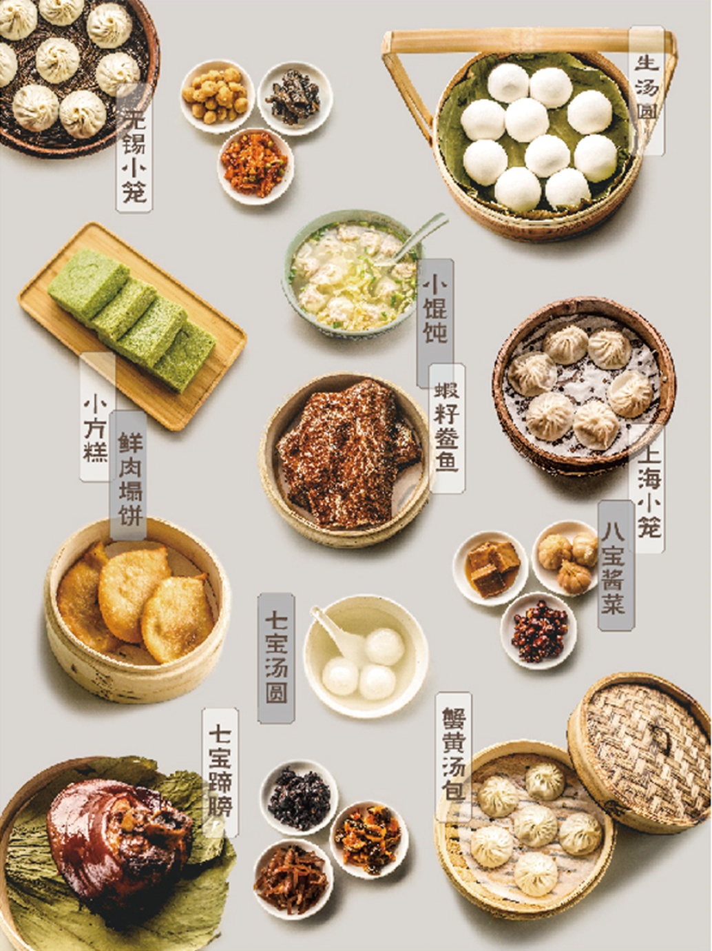 世事变迁也敌不过一碗市井烟火,七宝里弄的方糕、海棠糕、重阳糕、梅花糕、青团、塌饼、干蒸荠菜圆子等农家糕饼可谓舌尖上的非遗。其中,最负盛名的大概是七宝方糕,糯米和粳米的合理搭配,辅以红枣、桂花、松子肉、冬瓜糖等时令佐料,经过打米—搓粉—定模—蒸糕的步骤制作而成。刚出炉的方糕热而松软,豆沙、枣泥、芝麻等馅料混合着糯米的清香在唇齿中绽开,让人不禁想多吃几口。