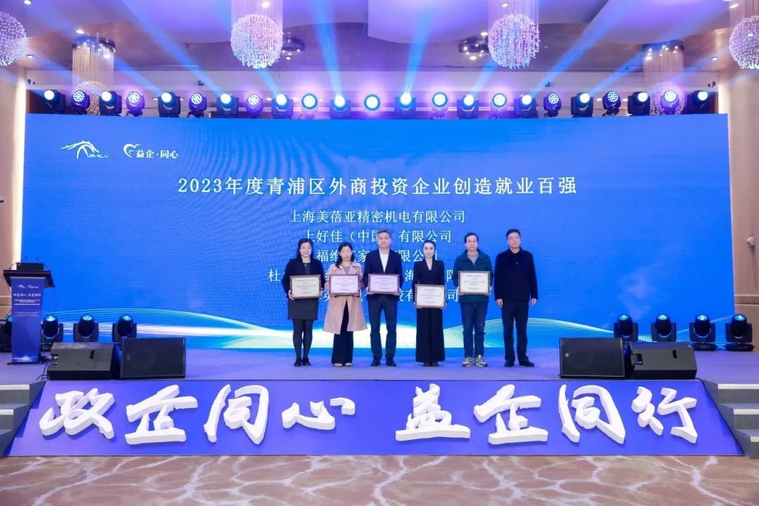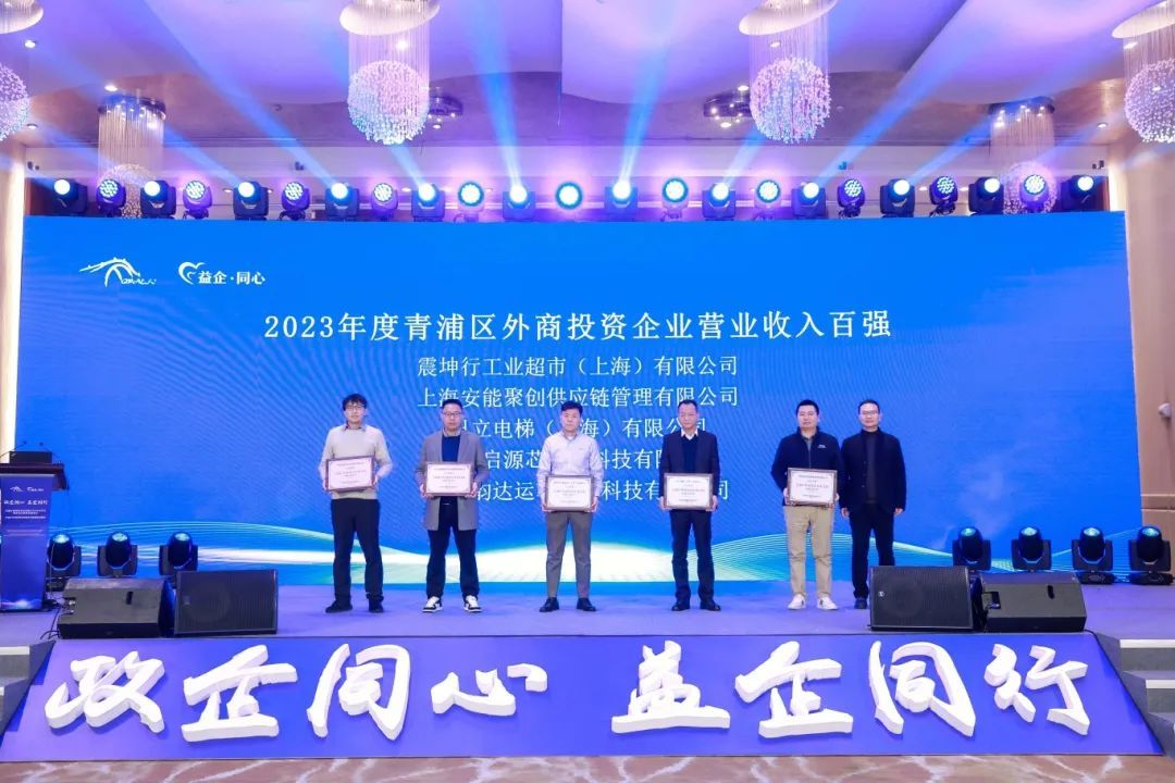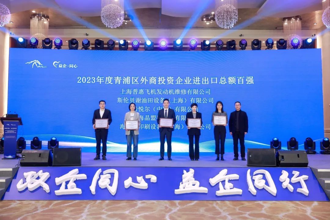 活动中,区商务委作青浦区外资发展成果汇报。活动为2023年度青浦区外商投资企业营业收入、进出口、纳税贡献、创造就业百强企业代表颁奖。全区优秀百强企业代表普惠飞机发动机维修有限公司、上海美蓓亚精密机电有限公司作交流发言。