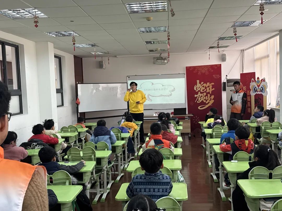 今年寒托班“开班第一课”紧扣思政与科创主题特色,以沉浸式、多元化的教学体验,引导学员们传承红色精神,追寻“科创之光”。静安“JA37民星讲师团”为寒托班的孩子们带来生动宣讲。