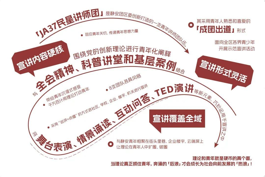 团区委介绍说,静安“JA37民星讲师团”来自静安各行各业,由医生、教师、两企三新代表、基层典型人物等组成,大家用亲身经历和独特视角讲述静安故事。在共和新路街道办班点,由四位医护人员组成的“健康智汇团”,不仅为小朋友们带来健康讲座,还用面对面的讲解传递思想力量,让红色基因能够传承和发扬,渗透到更多的年轻血脉中。