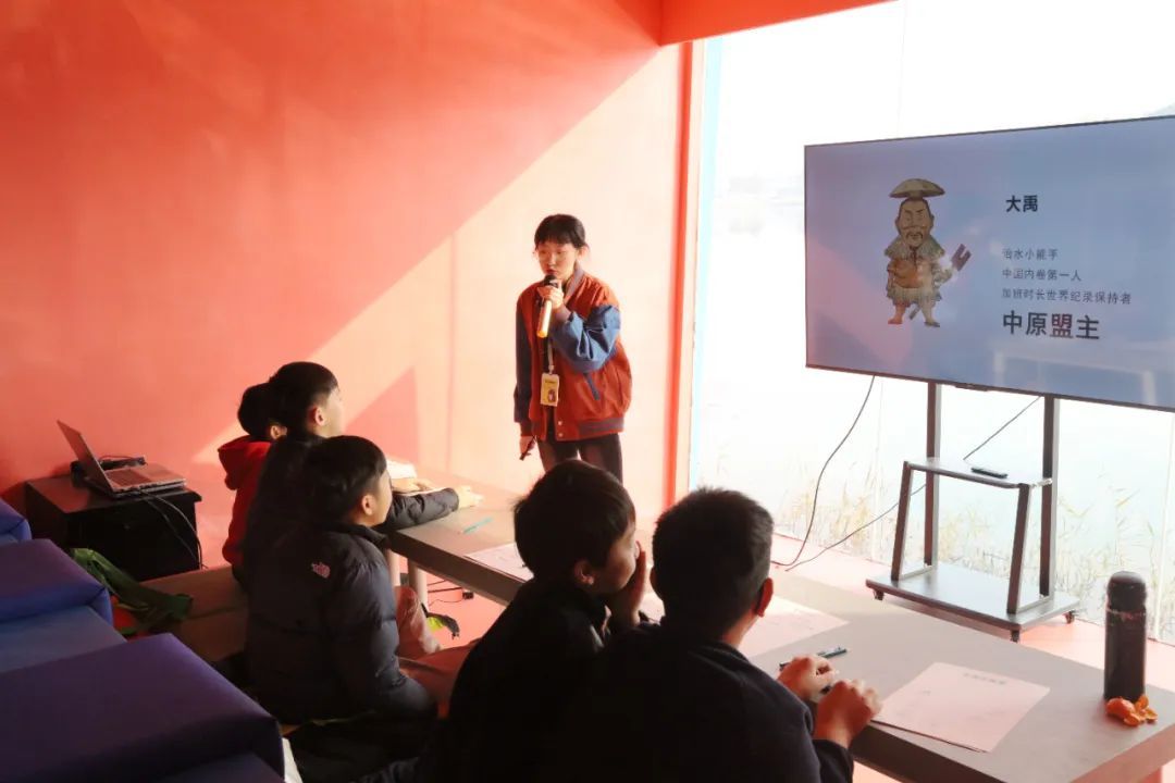 “大禹三过家门而不入,喜提中国内卷第一人,加班时长世界纪录保持者的称号……”1月20日,在小学生知识量拓展营上,授课老师正用脱口秀的形式,讲述着夏朝的历史故事和人物。风趣幽默的语言,配合生动的漫画展示,孩子们时而捧腹大笑,时而若有所思,沉浸在这段历史之旅中。