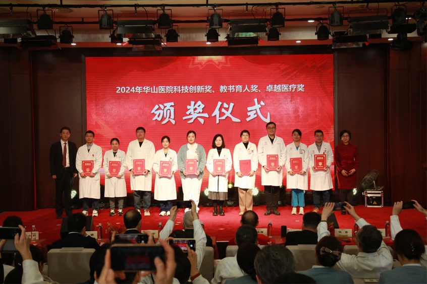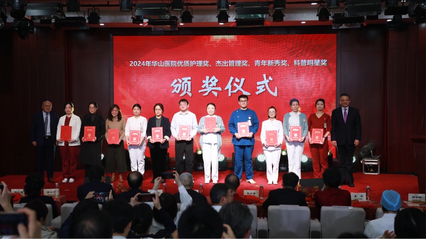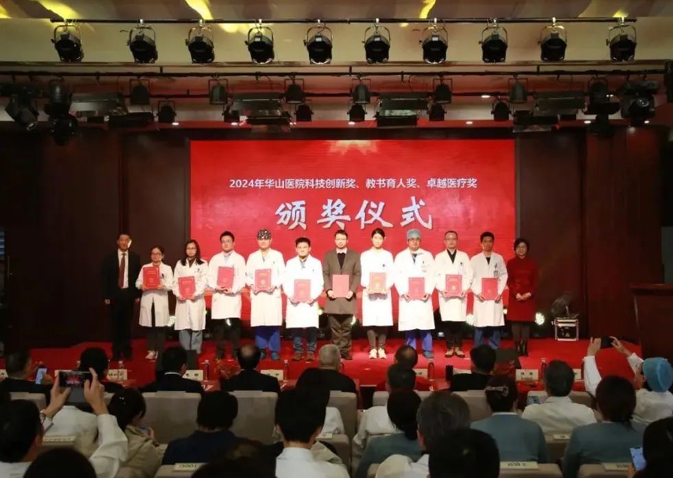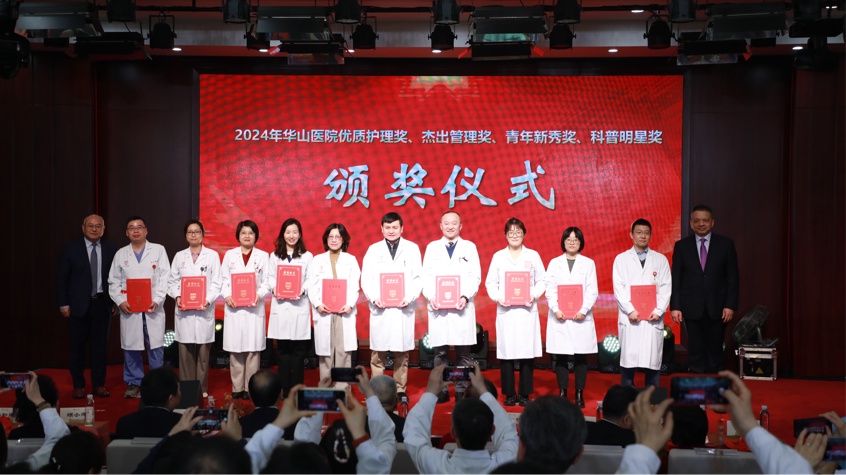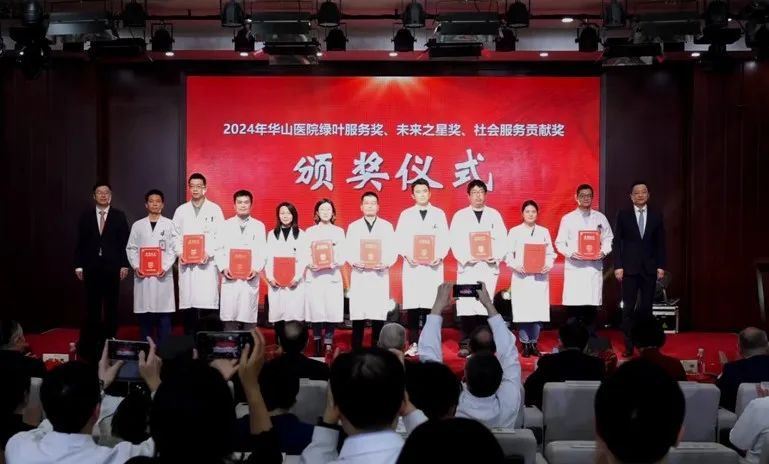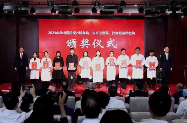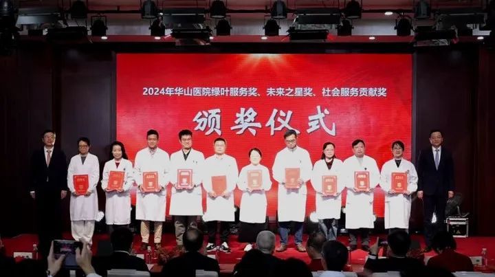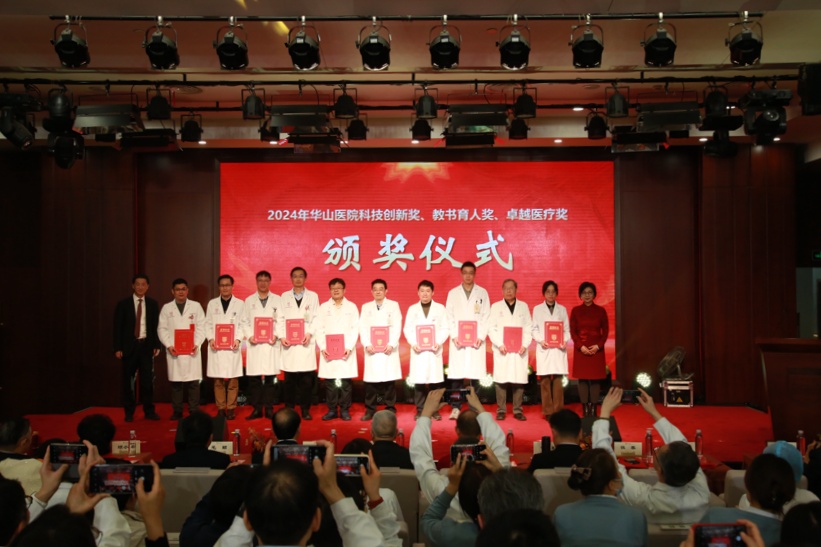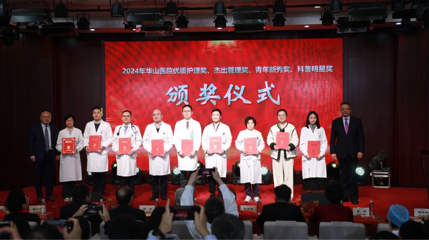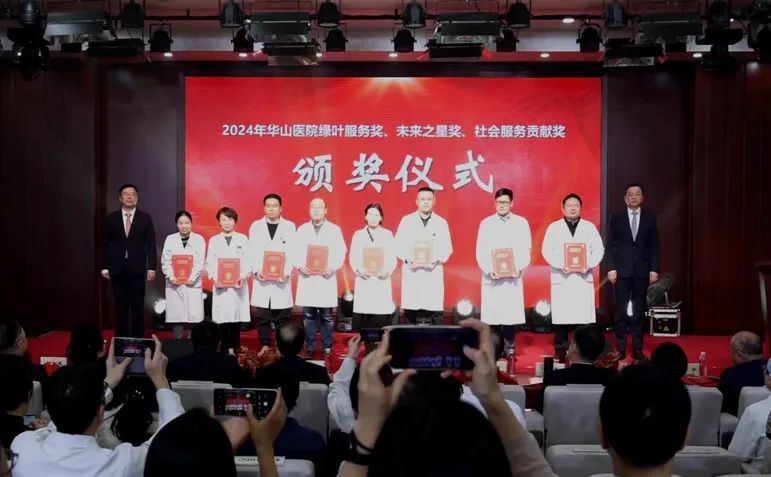 过去一年,华山人始终坚守临床一线,用实际行动诠释了医者的责任与担当,在医教研等领域涌现出一批具有先进代表性的集体和个人。经过科室申报、院内擂台评比、党委会审议决定,医院评选出“先进集体”、“科技创新奖”、“教书育人奖”、“卓越医疗奖”、“优质护理奖”、“杰出管理奖”、“青年新秀奖”、“科普明星奖”、“绿叶服务奖”、“未来之星奖”、“社会服务贡献奖”等先进集体和个人。院领导依次宣读表彰决定和表彰名单,并与老领导们一起,为获奖的集体和个人颁奖。