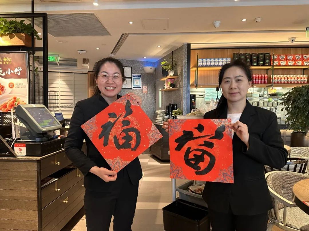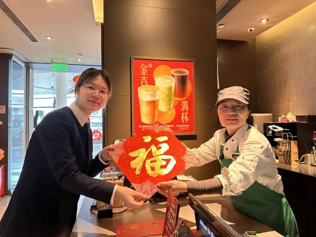 活动现场还开展了点福、送福、接福活动。虹桥机场的新兴领域商铺代表以及航站楼各支部代表们接过了“福”字,接住了新一年的“福”气。随后,程家桥街道党群服务中心也为虹桥机场1号航站楼内的商铺们送上“福”字。来自上海香雪海国际贸易有限公司的葛女士在虹桥机场航站楼工作已有十余年,她表示:“春节期间,我们和很多民航工作者们都一起坚守岗位,能收到这样一份‘福’气,感觉更加温暖。”