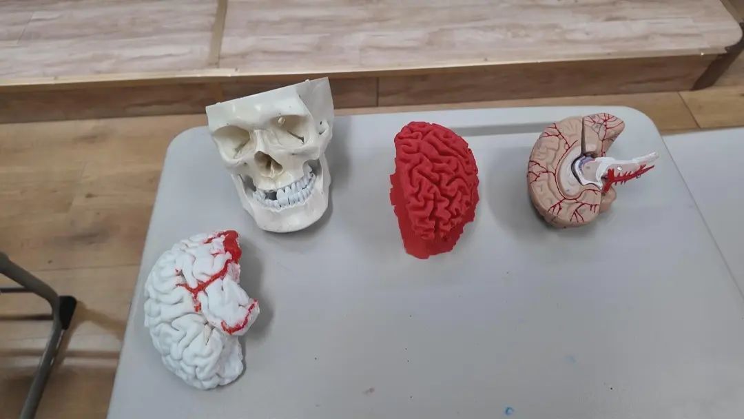 “脑机接口是通过电生理技术,读取我们大脑中的电信号,然后将它们翻译为我们能够理解的信息,再利用这些信息指挥电脑或者机器运行的新兴技术。”陈医生用通俗易懂的语言向同学们介绍了脑机接口的基本原理。同时展示了脑电图电极脑模型、脑深部电刺激设备和迷走神经刺激等,也介绍了脑机接口在医学领域的应用,例如帮助瘫痪患者重新获得行动能力等,让同学们近距离感受到了科技的魅力。