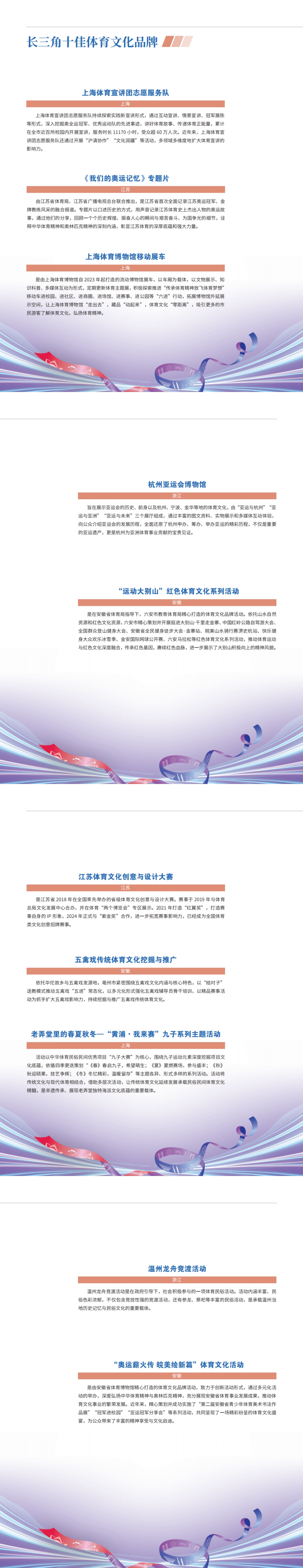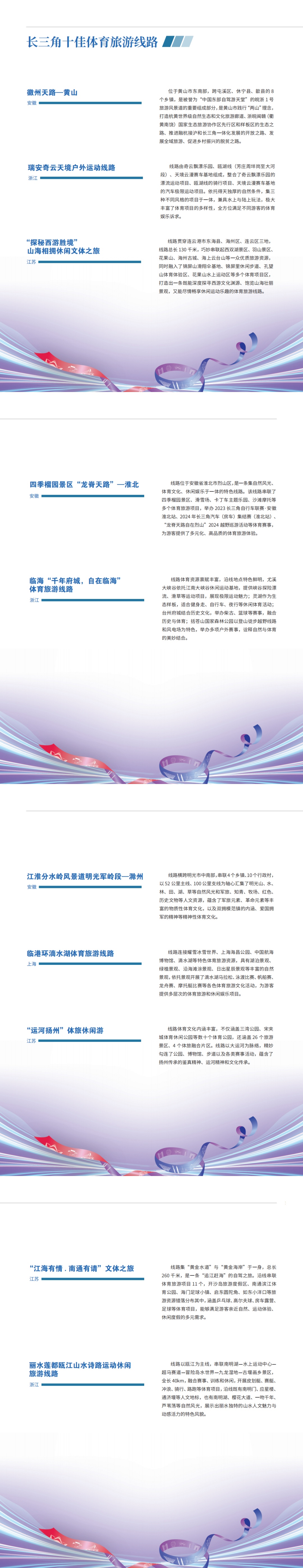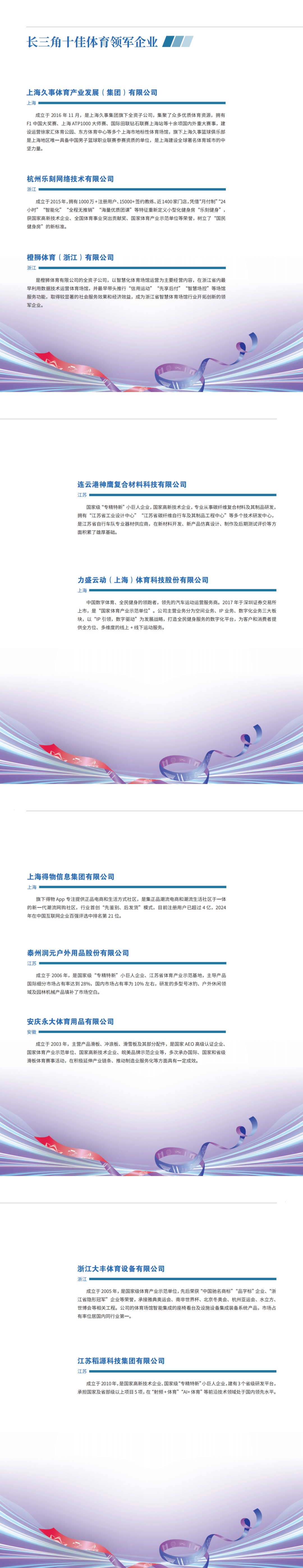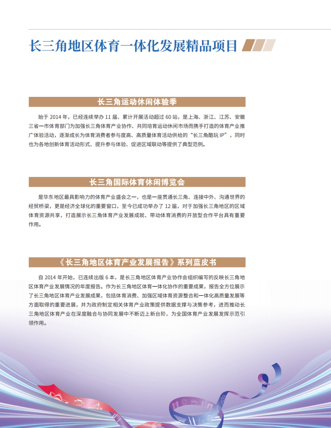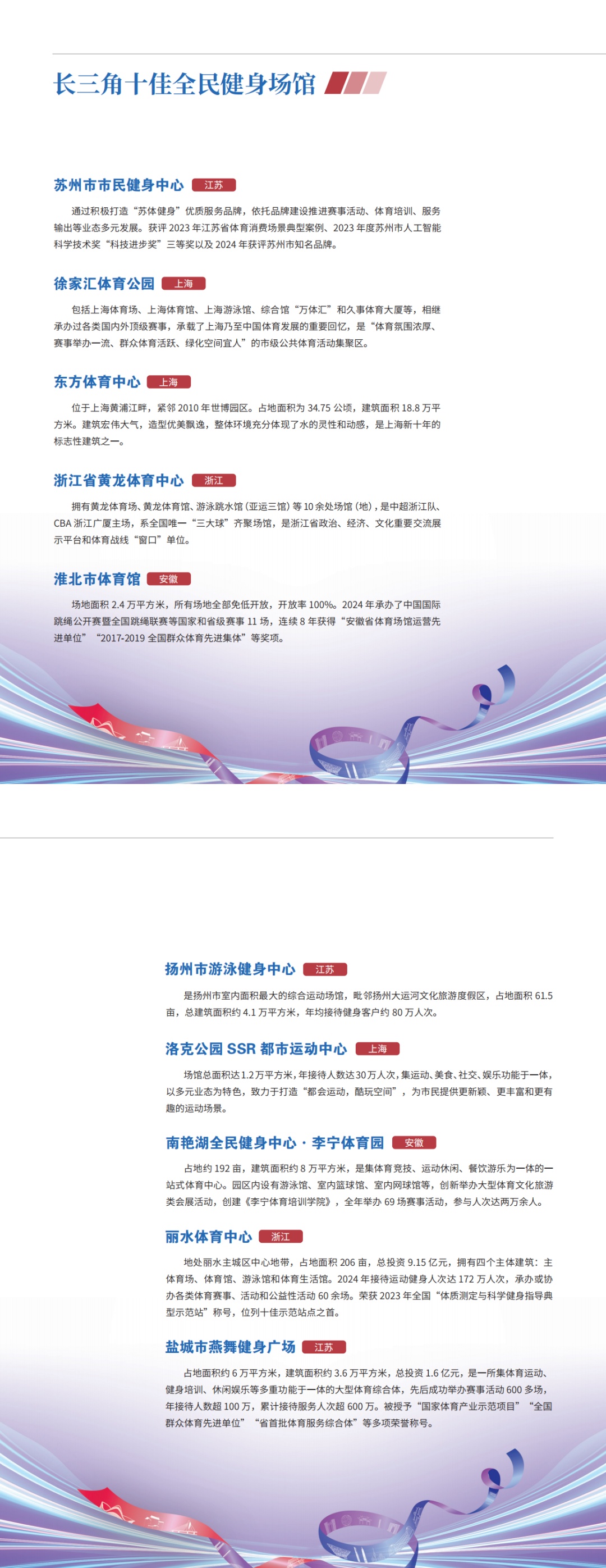 这份榜单,是对长三角体育一体化进程的一次阶段性总结,而在未来,长三角体育还将继续协同发展,努力创造更多成果,为全民健身和体育事业的进步贡献更多力量。