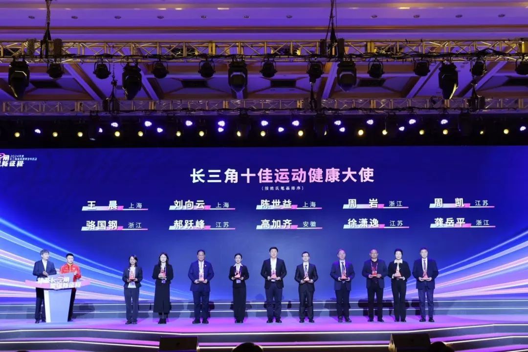 跳水世界冠军周吕鑫、大皖新闻副总编辑童建明宣布长三角十佳全民健身达人、长三角十佳运动健康大使、长三角十佳休闲健身步道、长三角十佳全民健身场馆奖项