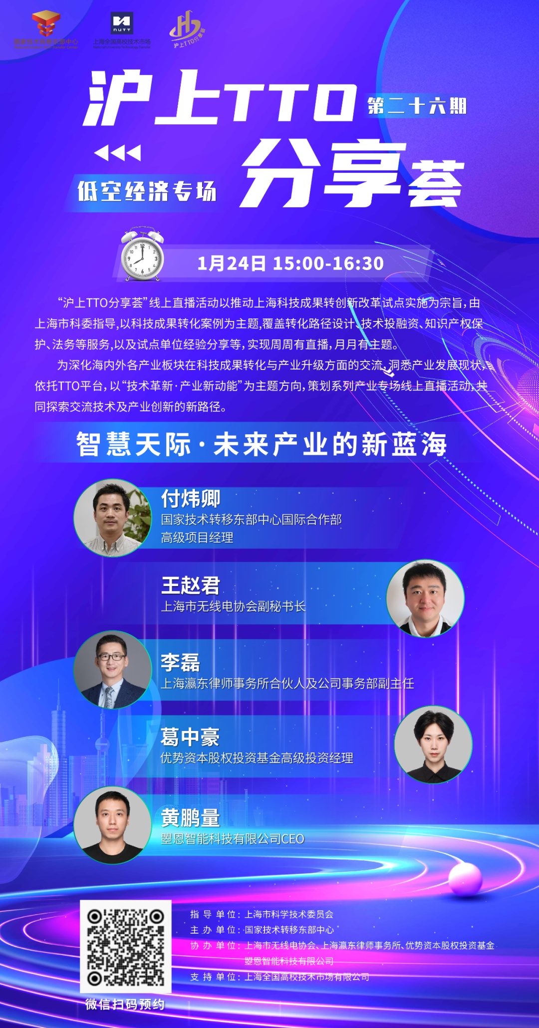 为深化海内外各产业板块在科技成果转化与产业升级方面的交流,洞悉产业发展现状,依托TTO平台,以“技术革新·产业新动能”为主题方向,策划系列产业专场线上直播活动,共同探索交流技术及产业创新的新路径。本期直播主题是智慧天际·未来产业的新蓝海(低空经济专场),欢迎扫码预约。